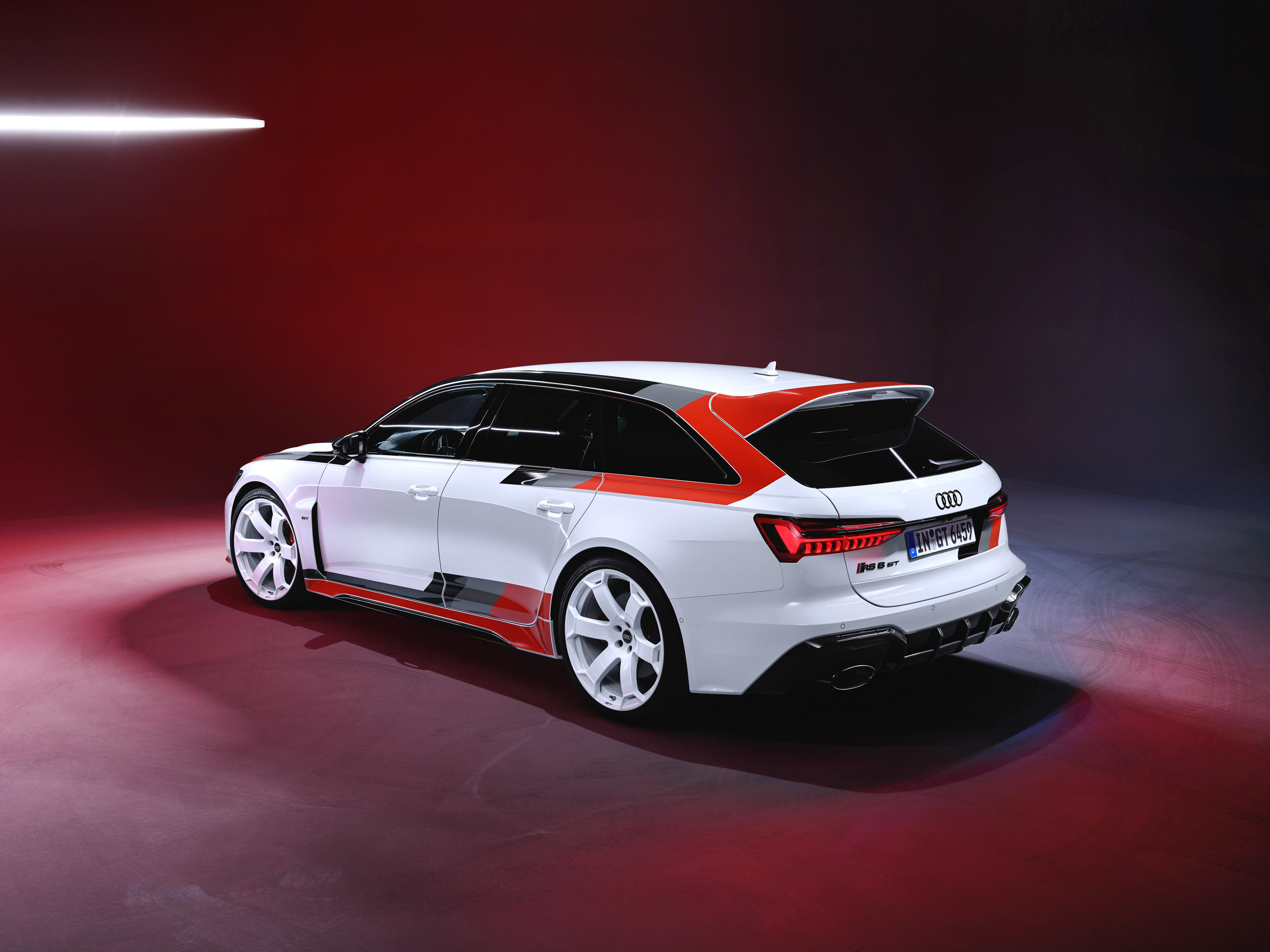 스페셜 에디션으로 공개된 ‘더 뉴 아우디 RS 6 아반트 GT’는 RS 6 아반트 라인업의 최상급 모델로, 인상적인 관통형 루프 엣지 스포일러와 새로 디자인된 디퓨저, 독보적인 디자인의 22인치 휠을 장착해 시리즈 최상위 모델로서의 지위를 보여준다. 내부의 고급스러운 버킷 시트와 산뜻한 컬러 조합, 센터 콘솔에 새겨진 일련번호가 특징이며, RS 6 아반트 GT만의 조절 가능한 경량 코일오버 서스펜션과 후방 차축의 새로운 콰트로 스포트 디퍼렌셜은 드라이빙 경험을 한층 향상시킨다.