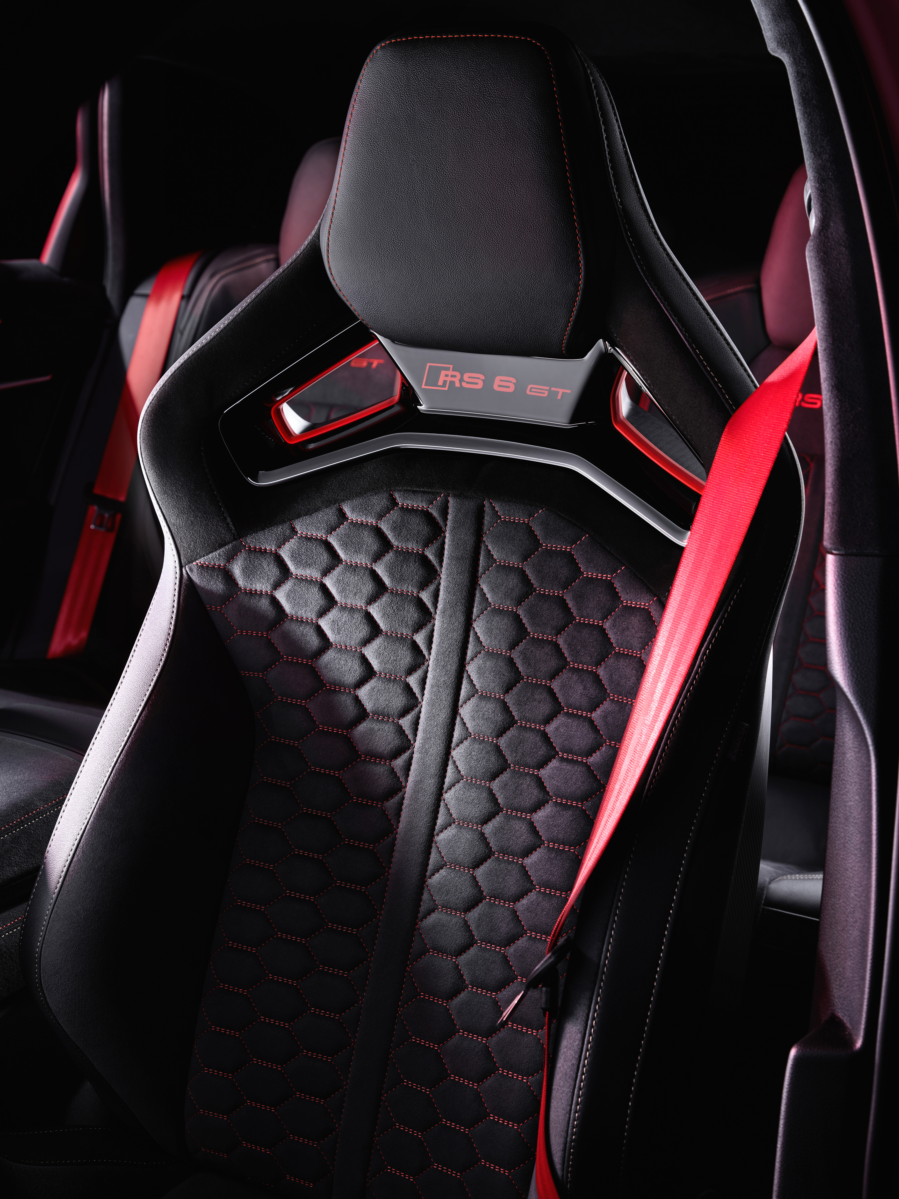 RS 6 아반트 GT에는 RS 디자인 패키지 플러스가 기본 사양으로 적용된다. 블랙 톤의 인테리어에는 스티어링 휠과 센터 콘솔 측면, 중앙 및 도어 암레스트의 스티치, ‘RS 6 GT’ 레터링이 새겨진 바닥 매트 등 레드와 구릿빛 컬러로 조합된 스페셜 에디션만의 특징이 더해진다. 가죽-디나미카 조합의 새로운 RS 버킷 시트와 헤드레스트 바로 아래의 ‘RS 6 GT’ 레터링도 같은 컬러로 제공된다. 시트 중앙의 벌집모양 스티치는 익스프레스 레드 컬러로 반짝이며, 버킷 시트 바깥쪽 솔기의 스티치는 구릿빛을 띤다.