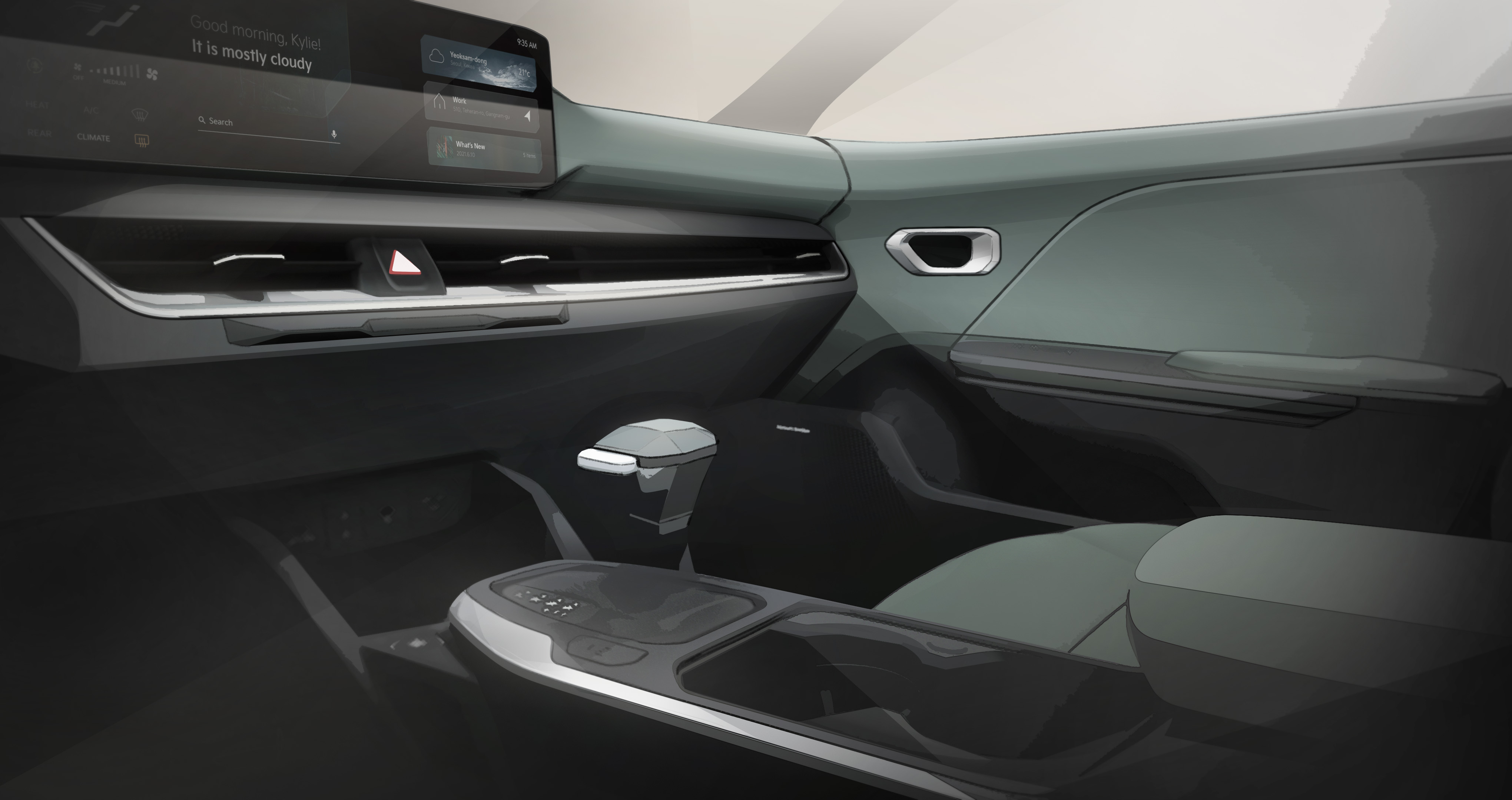 승객들은 K4의 세련되고 프리미엄 품질의 캐빈을 밝히기 위해 다양한 직접 및 간접 조명 옵션을 선택할 수 있습니다. 대시보드는 대형 중앙 화면으로 장식되어 있고 우아한 디자인의 중앙 콘솔이 운전자와 탑승자 환경 간 분할을 더욱 강조합니다. 물리적 버튼과 컨트롤은 의도적으로 최소화되어 있지만 '홈', '맵', '검색' 등의 기능을 위한 아름답게 디자인되고 우아하게 통합된 물리적 버튼과 로터리 컨트롤러로 차량 기능을 신속하고 직관적으로 제어할 수 있습니다. 그 아래에는 네 개의 추가 버튼이 있어 난방, 에어컨 및 환기 시스템을 원활하게 제어할 수 있습니다.