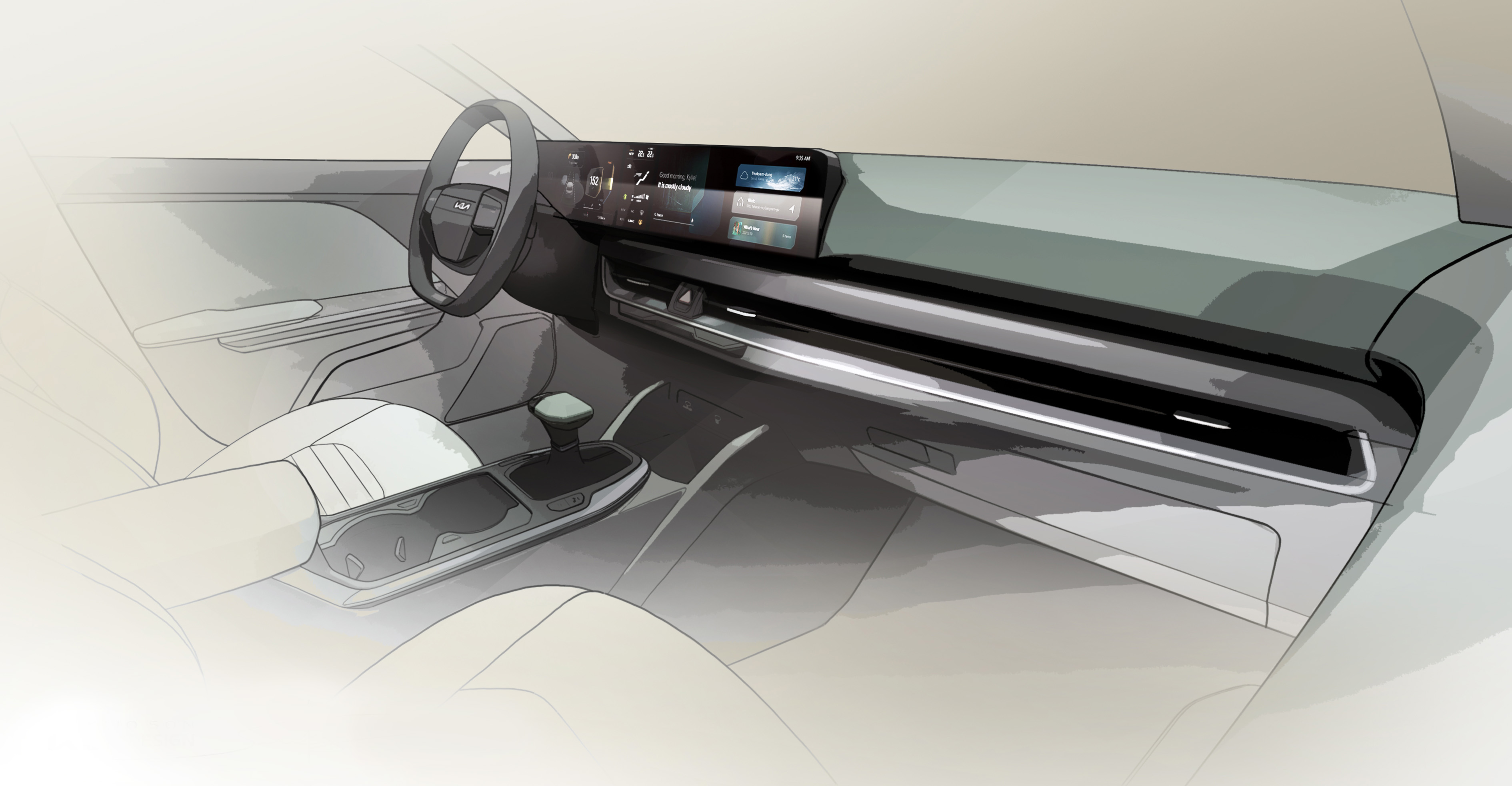 기아의 디자인 철학은 두 가지 상반된 개념을 결합해 만들어지는 창의적 긴장을 찬미합니다. 이런 급진적 접근법은 운전자 중심 cockpit 개념과 예상치 못한 레이아웃 디자인이 만나 K4 실내의 독특한 캐릭터를 만드는 K4를 통해 완벽히 구현되었습니다.