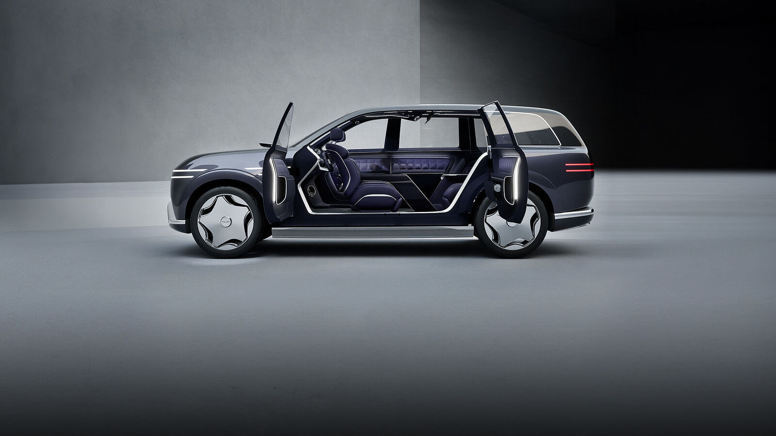 B필러리스 코치도어는 전통적인 차량 구조와 비교해 한층 개방적인 실내 공간을 제공하고, 실내외 디자인 혁신은 물론 승하차 편의성까지 극대화하면서 제네시스가 펼쳐 나갈 혁신적인 모빌리티의 비전을 보여주는 핵심 요소다.