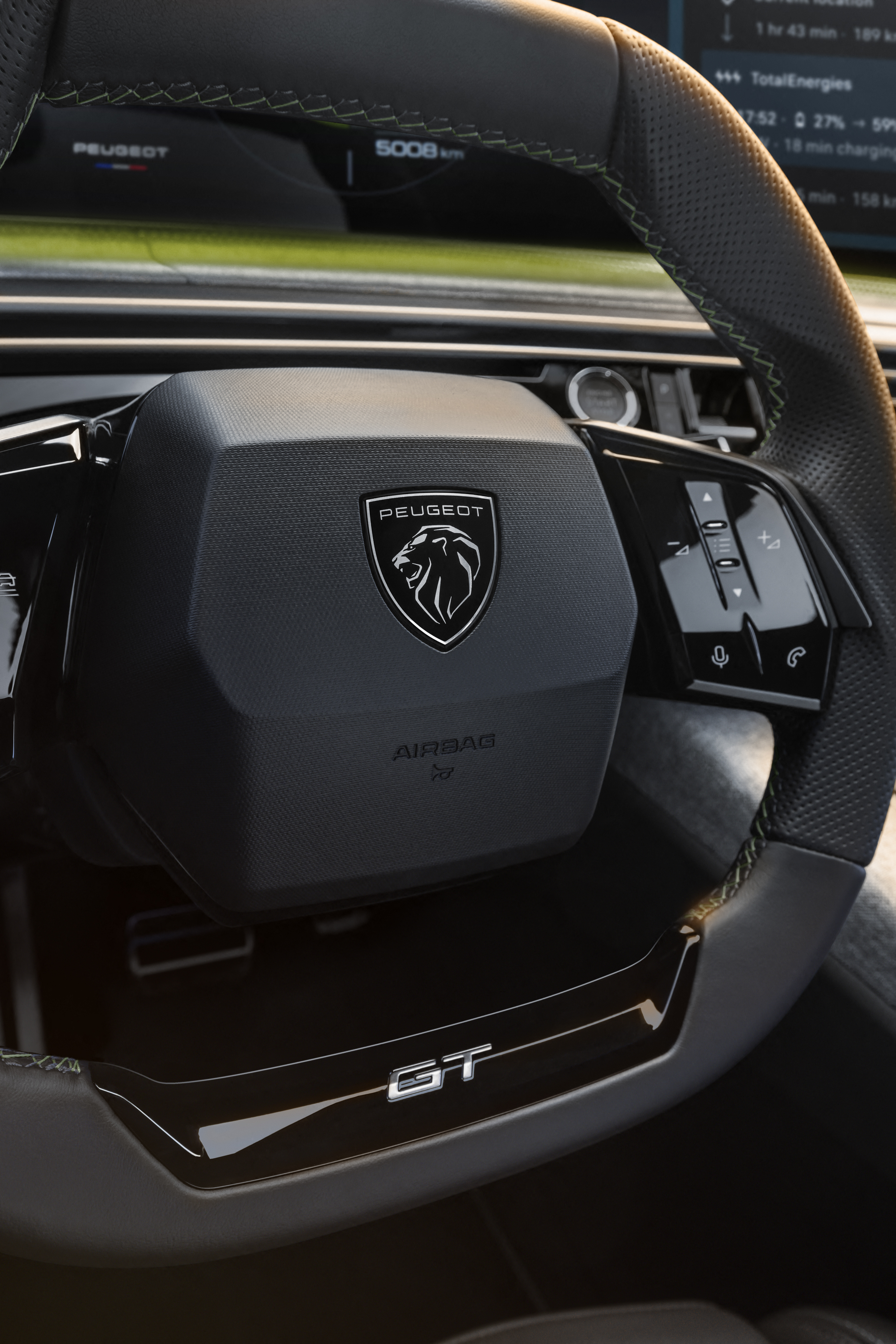실내는 뉴 E-3008 SUV를 통해 최초 소개했던 ‘파노라믹 아이-콕핏(Panoramic i-Cockpit®)’을 채택, 헤드업 디스플레이(HUD)와 대형 중앙 터치스크린의 기능을 통합한 ‘21인치 HD 파노라믹 스크린’을 GT 트림에 기본 제공한다. 스크린 아래 적용된 앰비언트 LED 조명은 공중에 떠 있는 듯한 느낌을 주며 운전자와 조수석 동승객 모두 간편하게 접근할 수 있도록 인체공항적으로 배치했다. 대시보드 중앙에는 운전자의 기호대로 10가지 기능을 맞춤 설정할 수 있는 아이-토글(i-Toggles®)이 위치한다. 특히 대형 파노라믹 글래스 루프를 적용해 3열까지 밝은 채광을 누릴 수 있다.