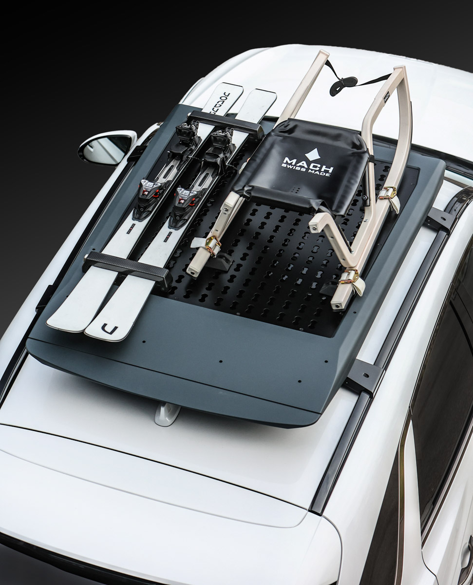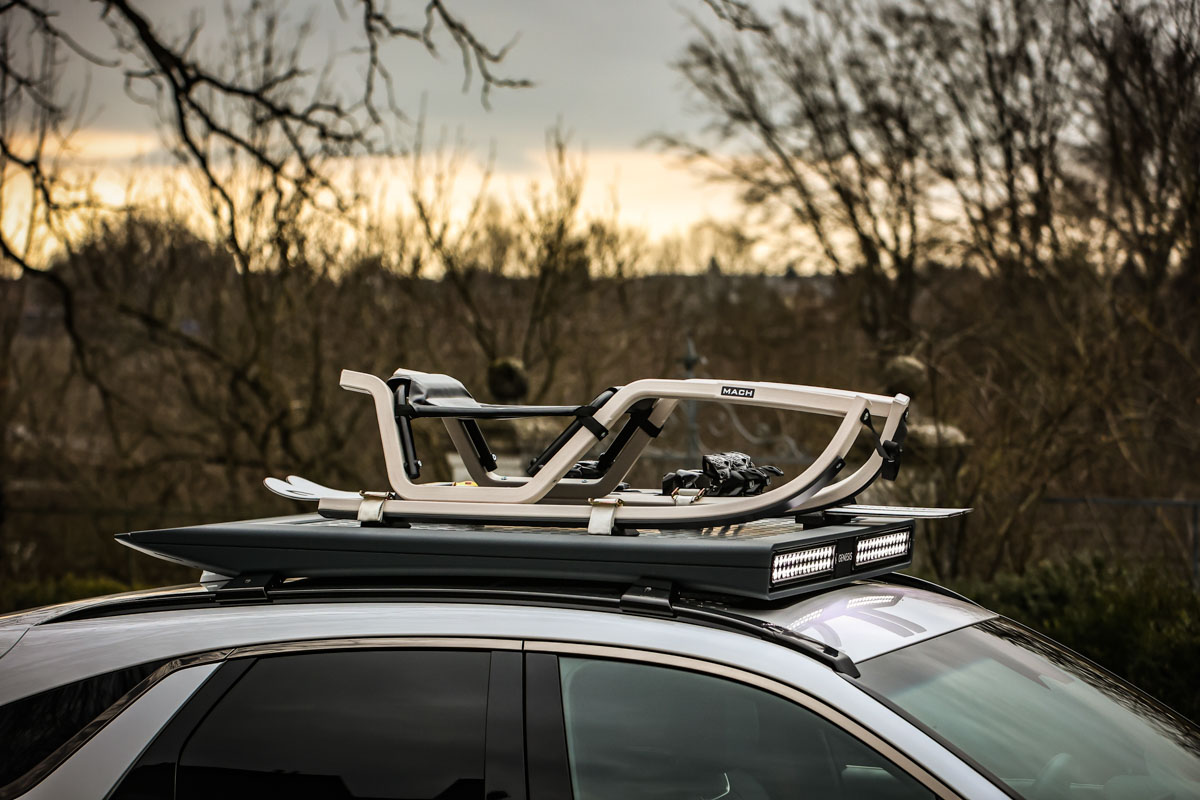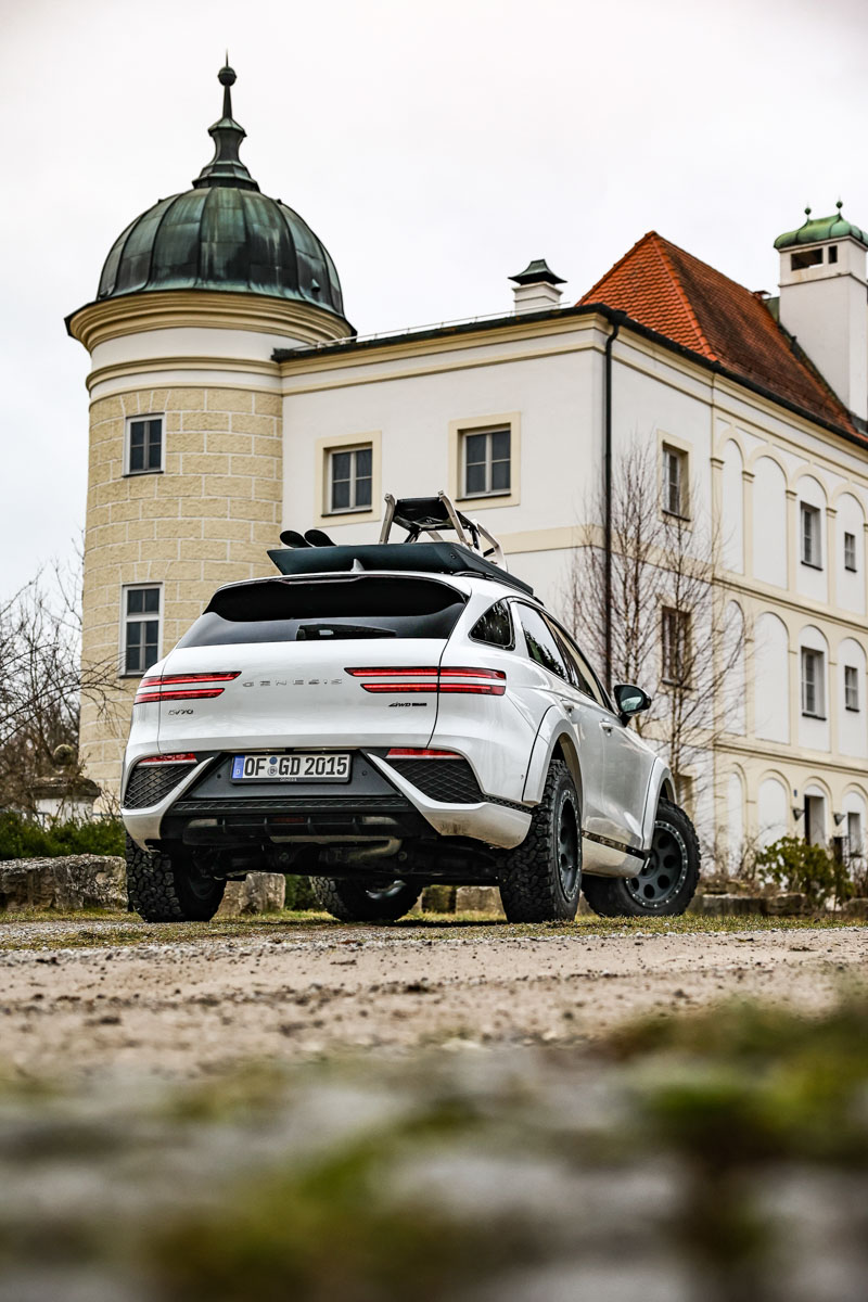 GV70 스노우는 제네시스와 오프로드 액세서리 전문업체인 독일 델타 4x4의 협업으로 탄생했습니다. 이 차량은 전천후 주행 가시성을 위해 40인치 LED 바 2개로 구성된 맞춤형 루프랙을 포함한 전문 윈터스포츠 장비를 갖추고 있습니다.