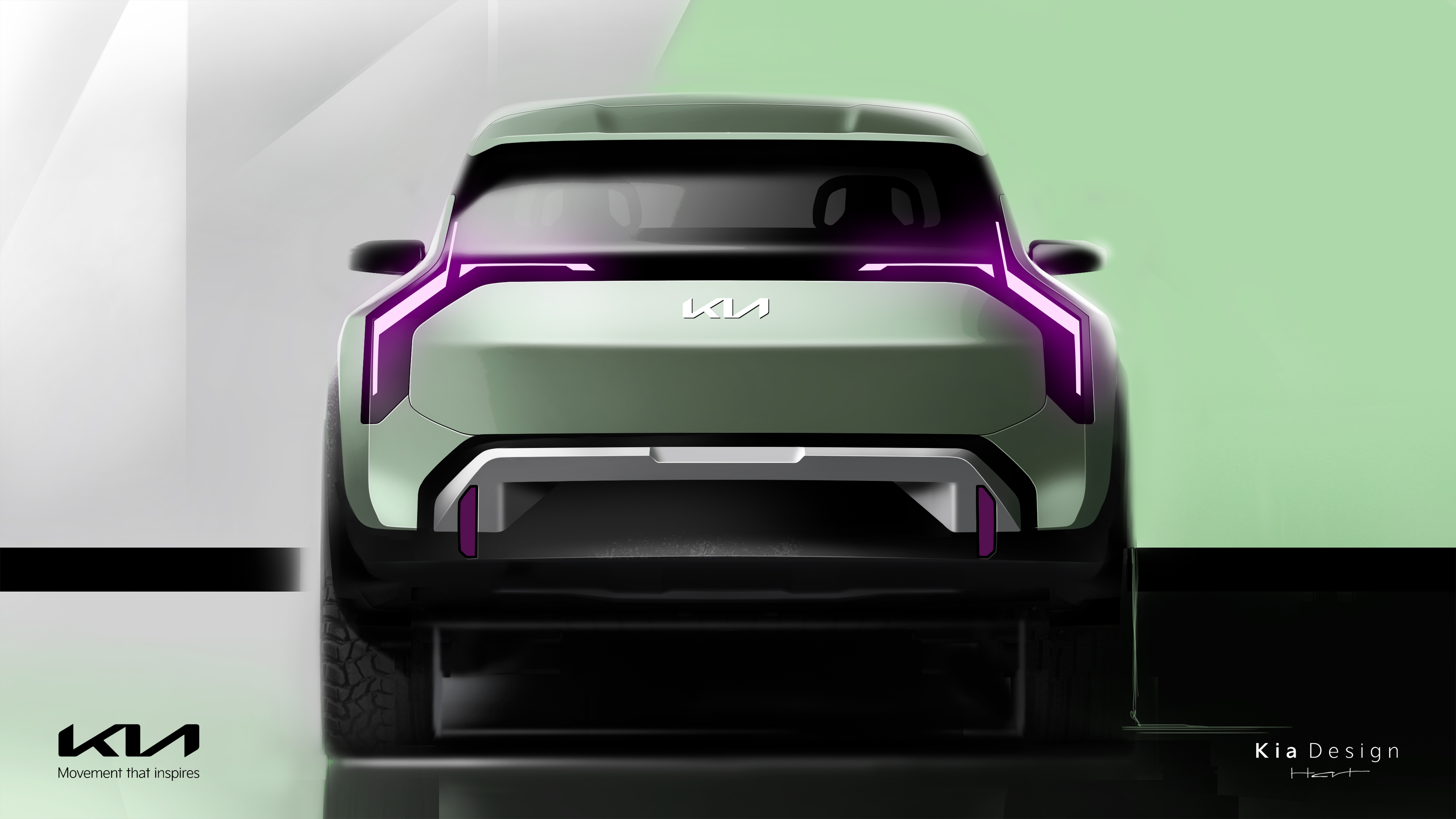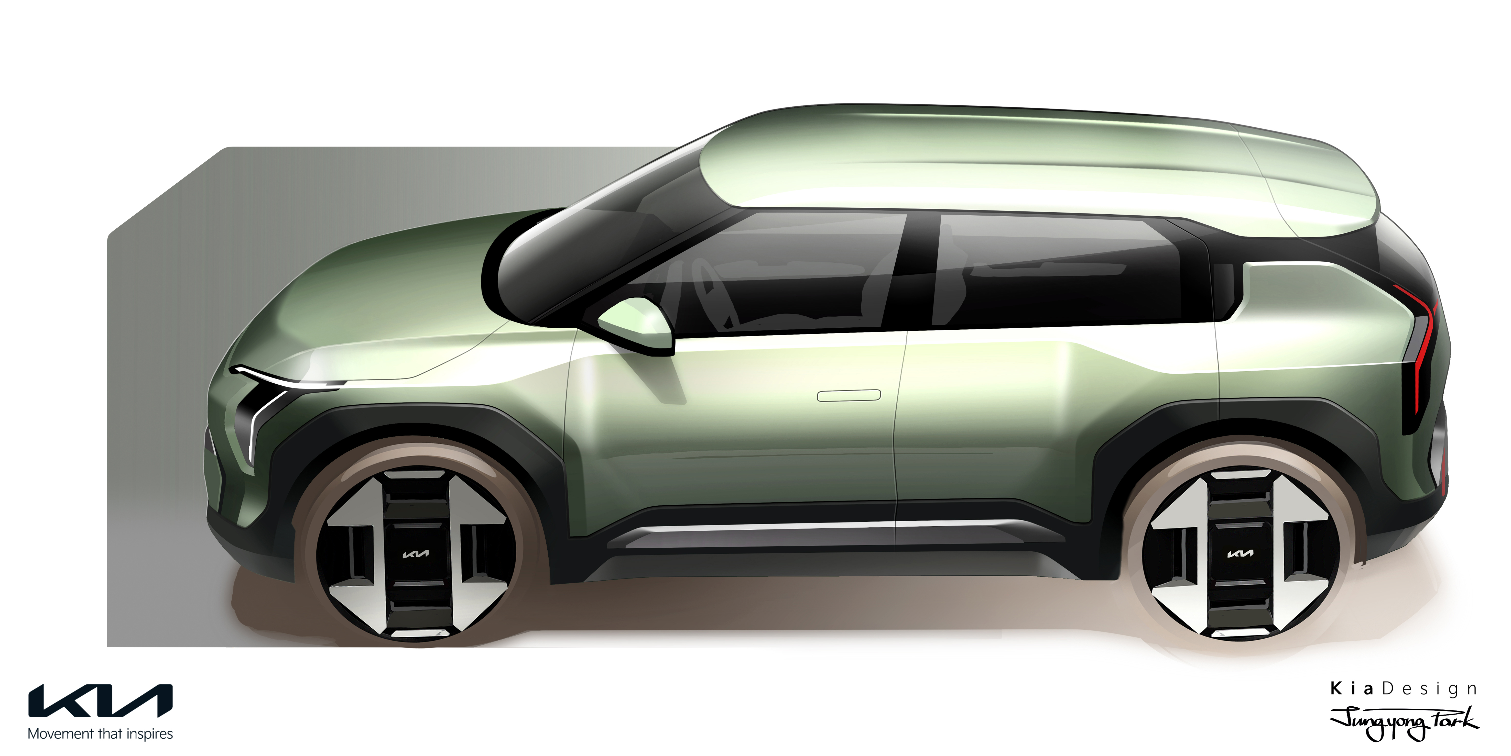 기아는 측면부를 이루는 선과 면을 기하학적으로 배치해 볼륨감 있는 차체와 민첩한 실루엣을 동시에 연출했다.