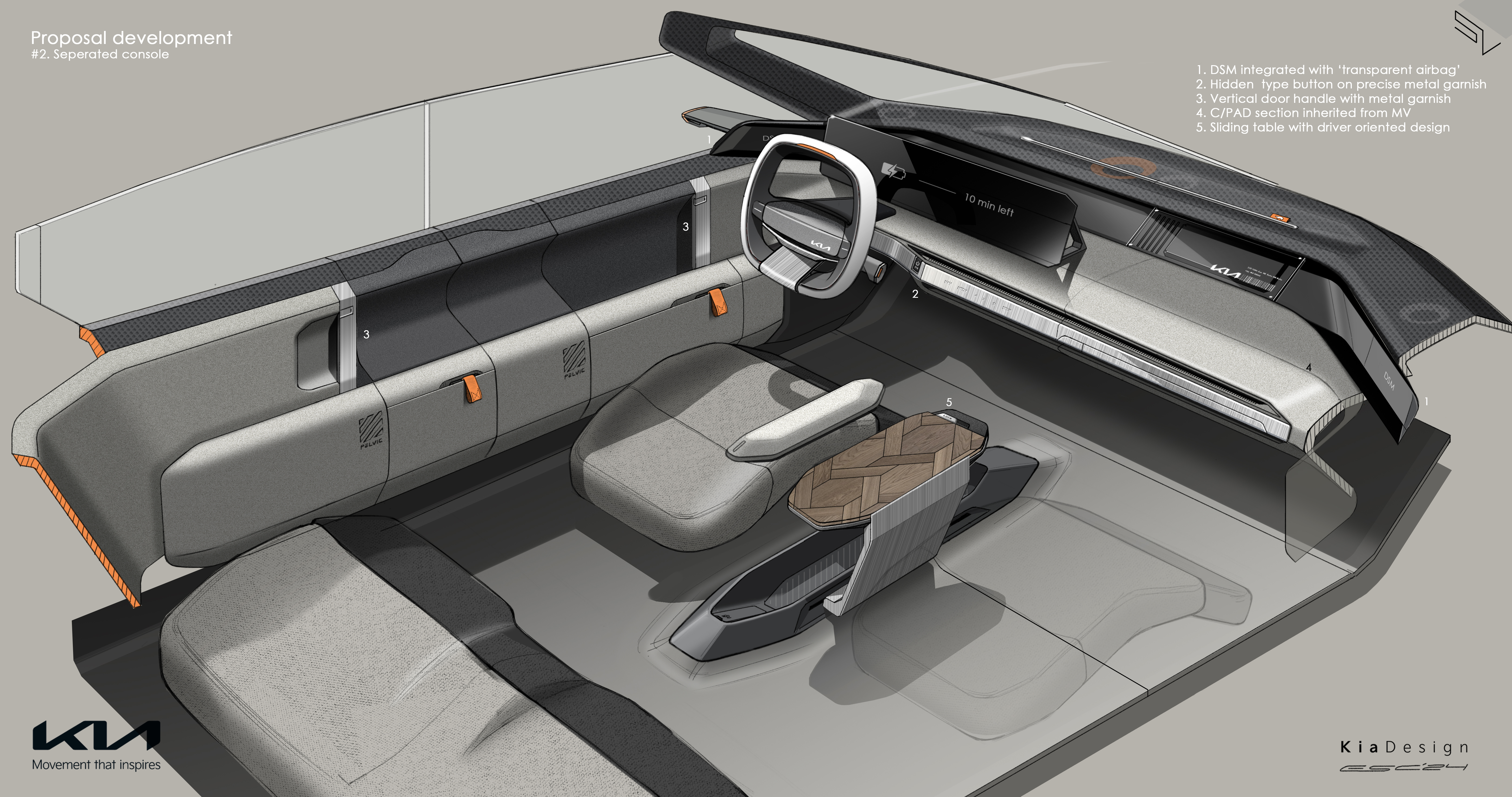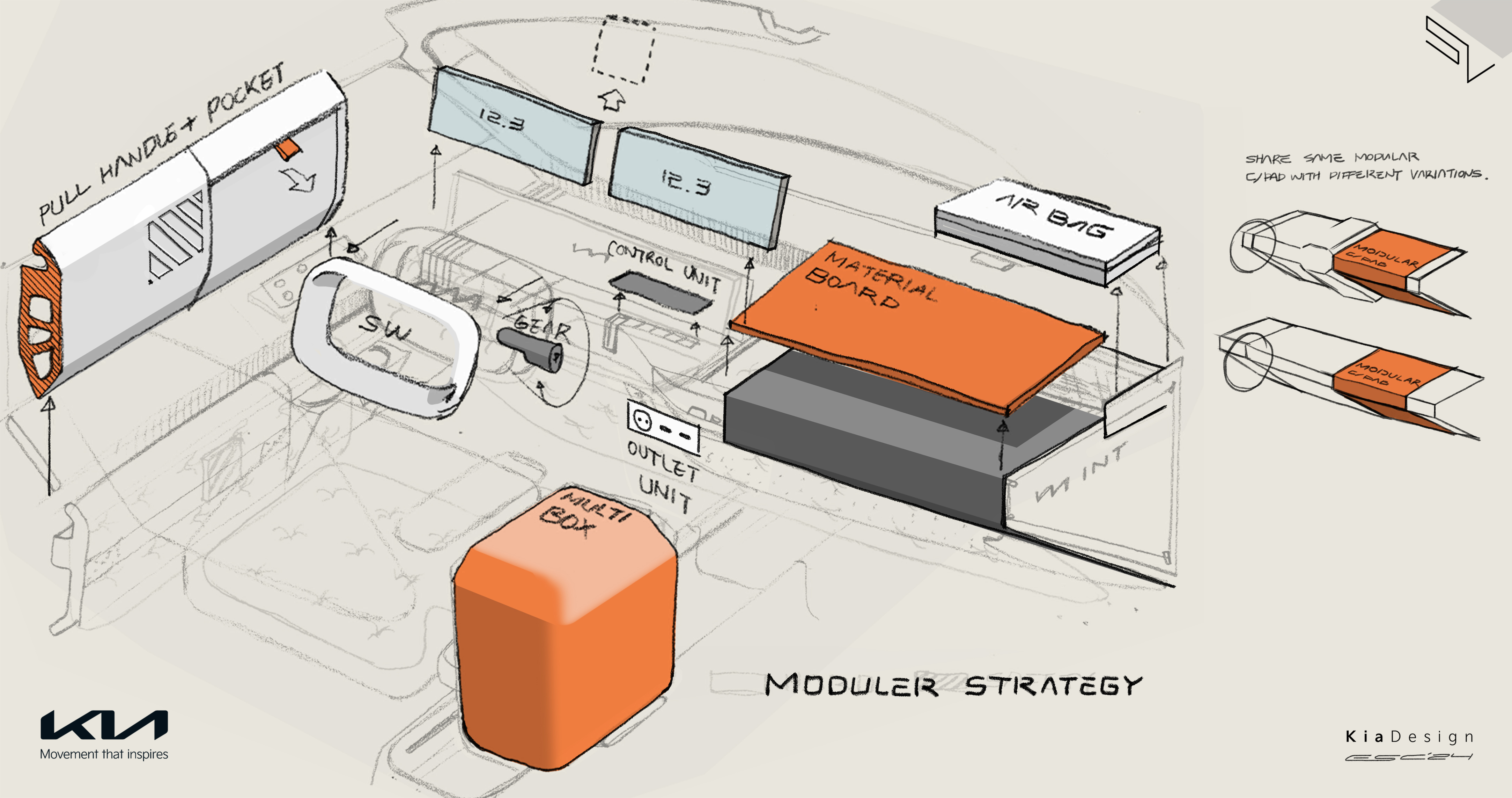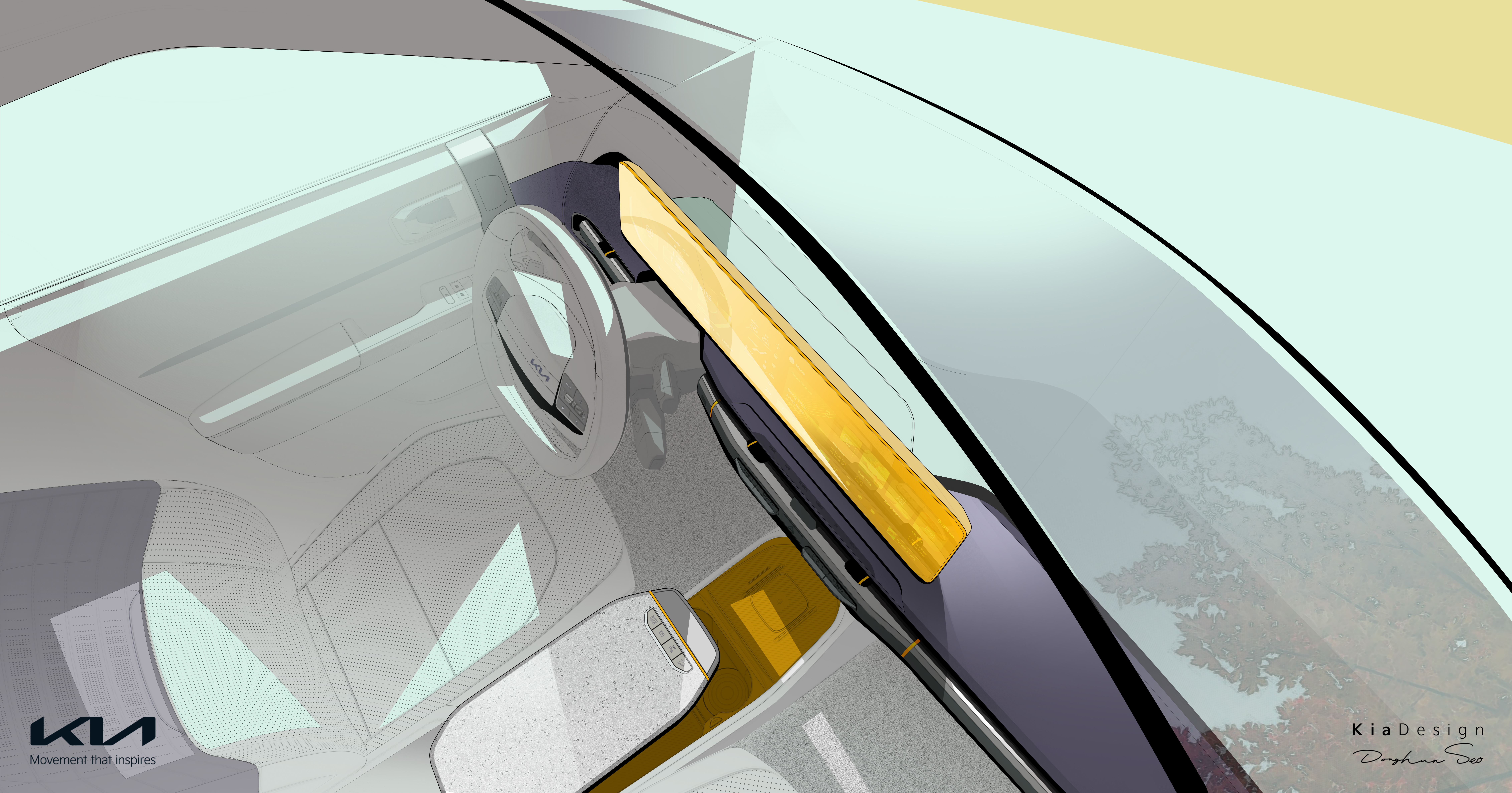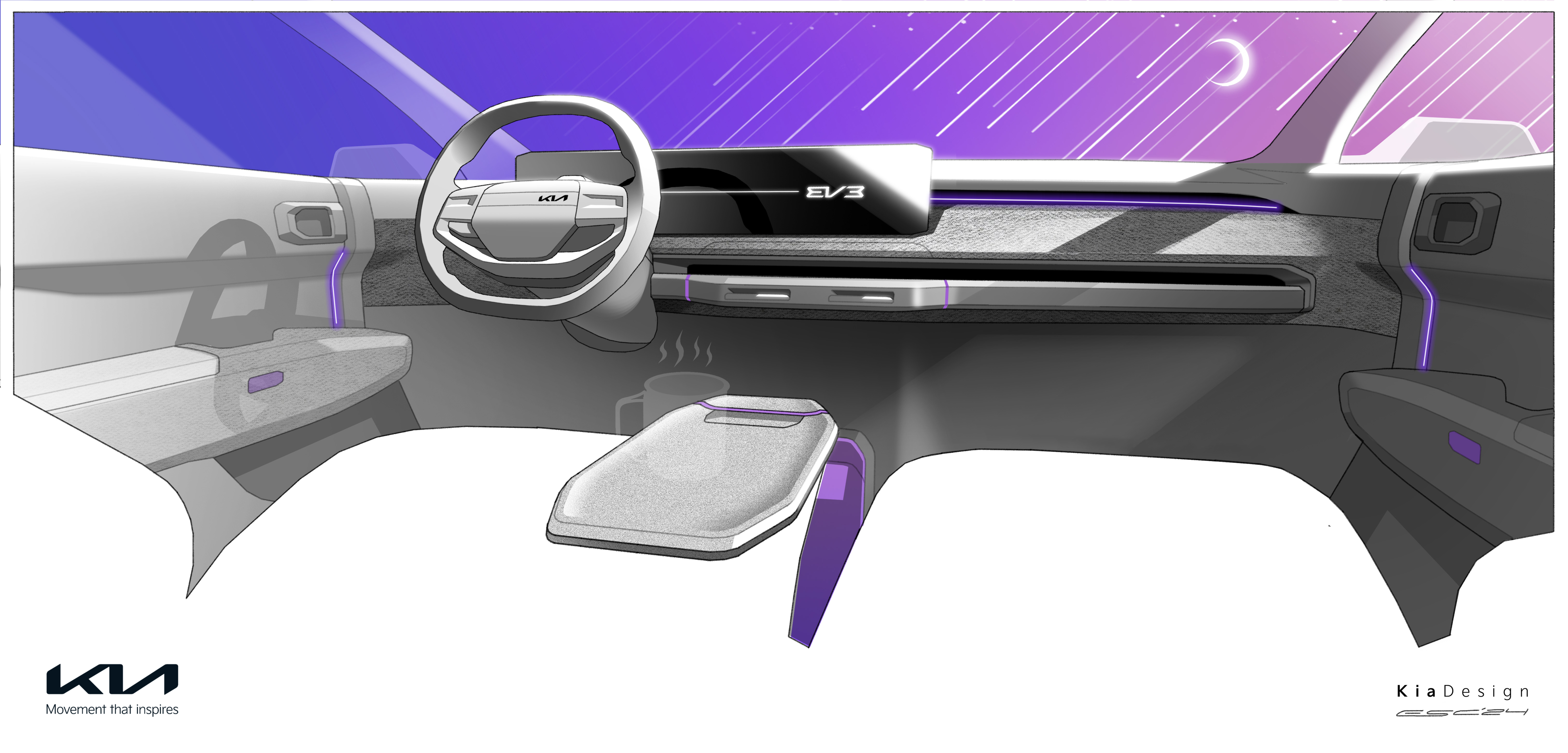 기아는 EV3의 실내를 간결한 디자인을 바탕으로 고객의 다양한 사용 목적을 충족시킬 수 있도록 구성했다.