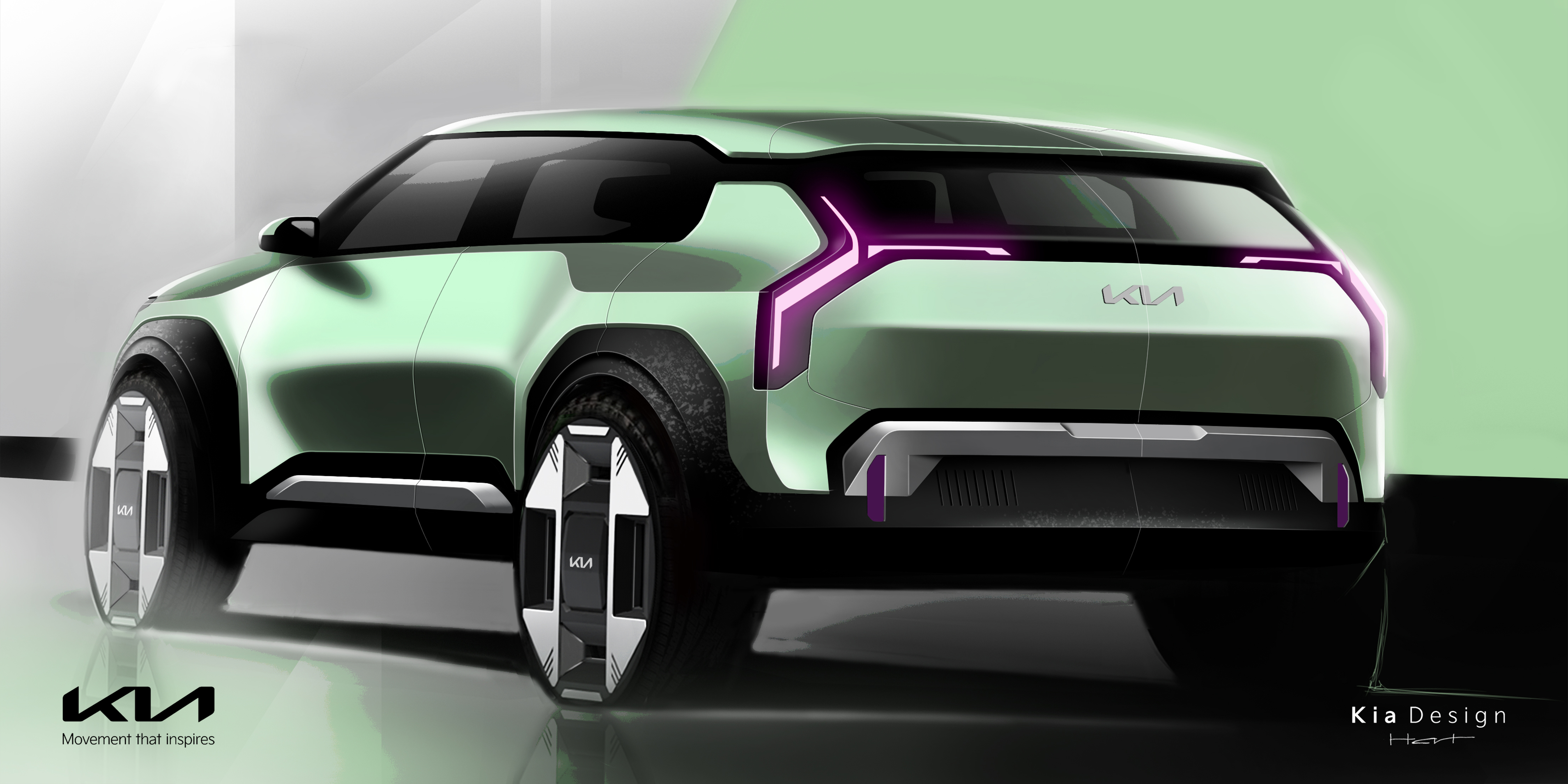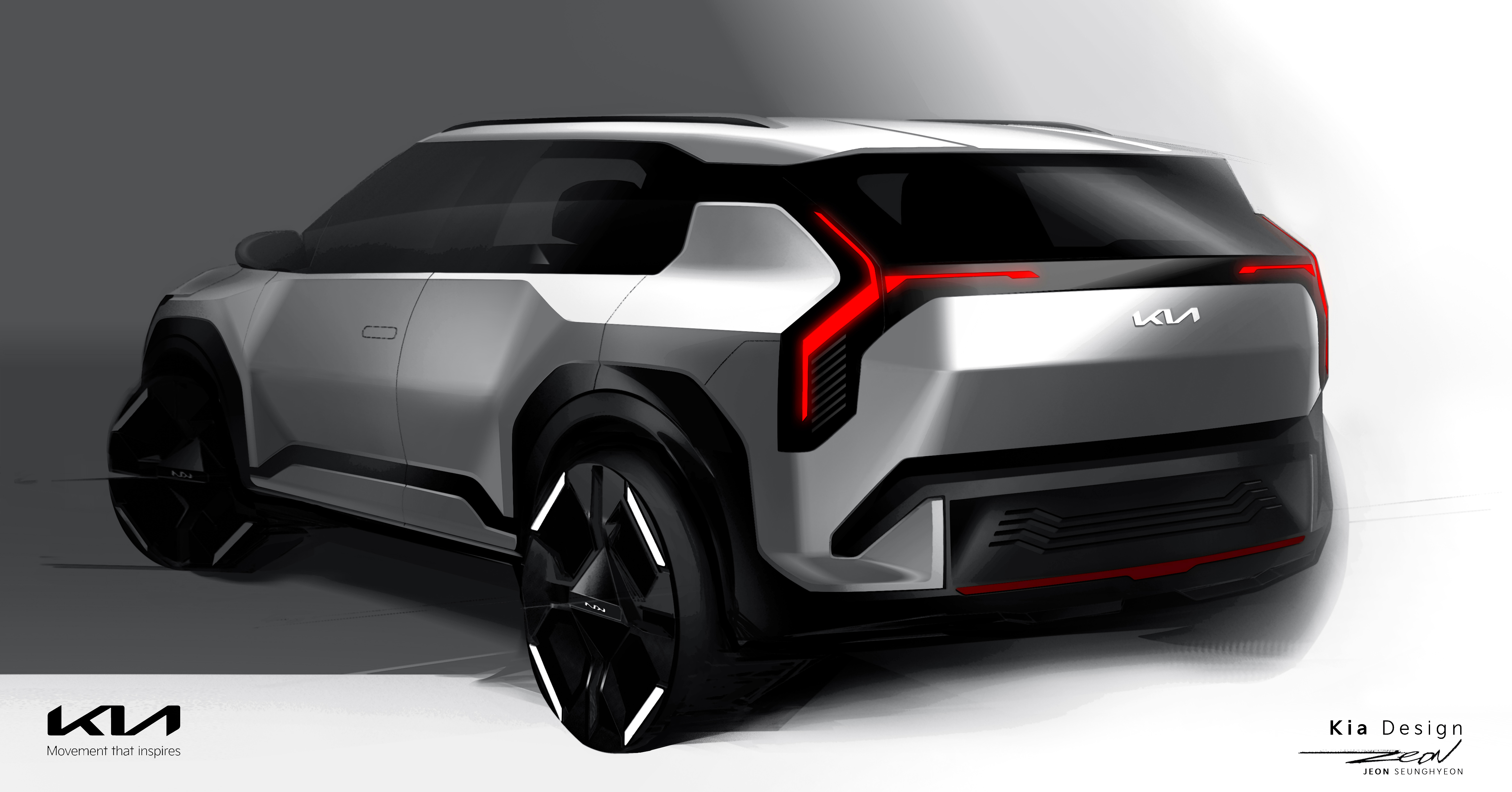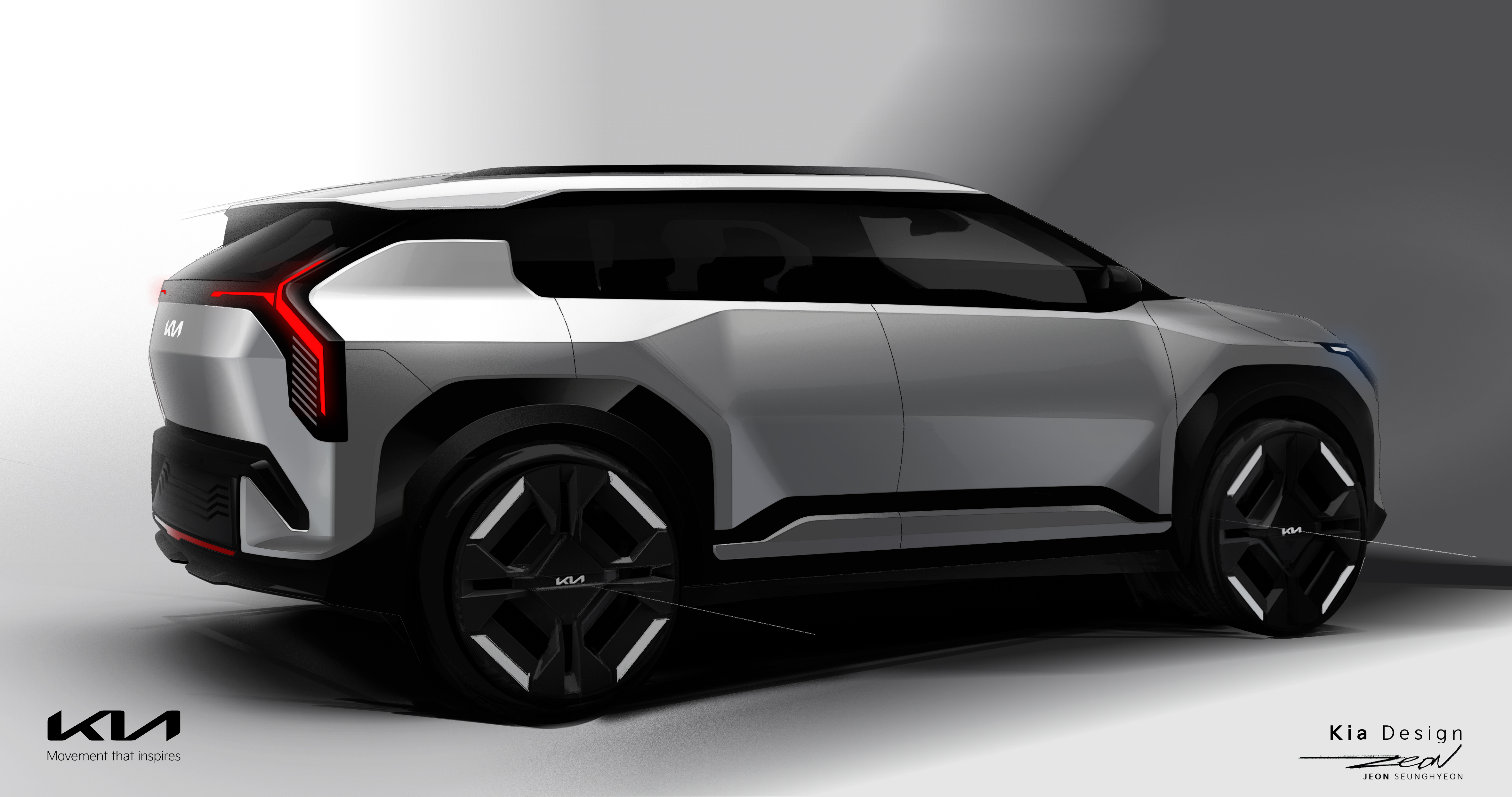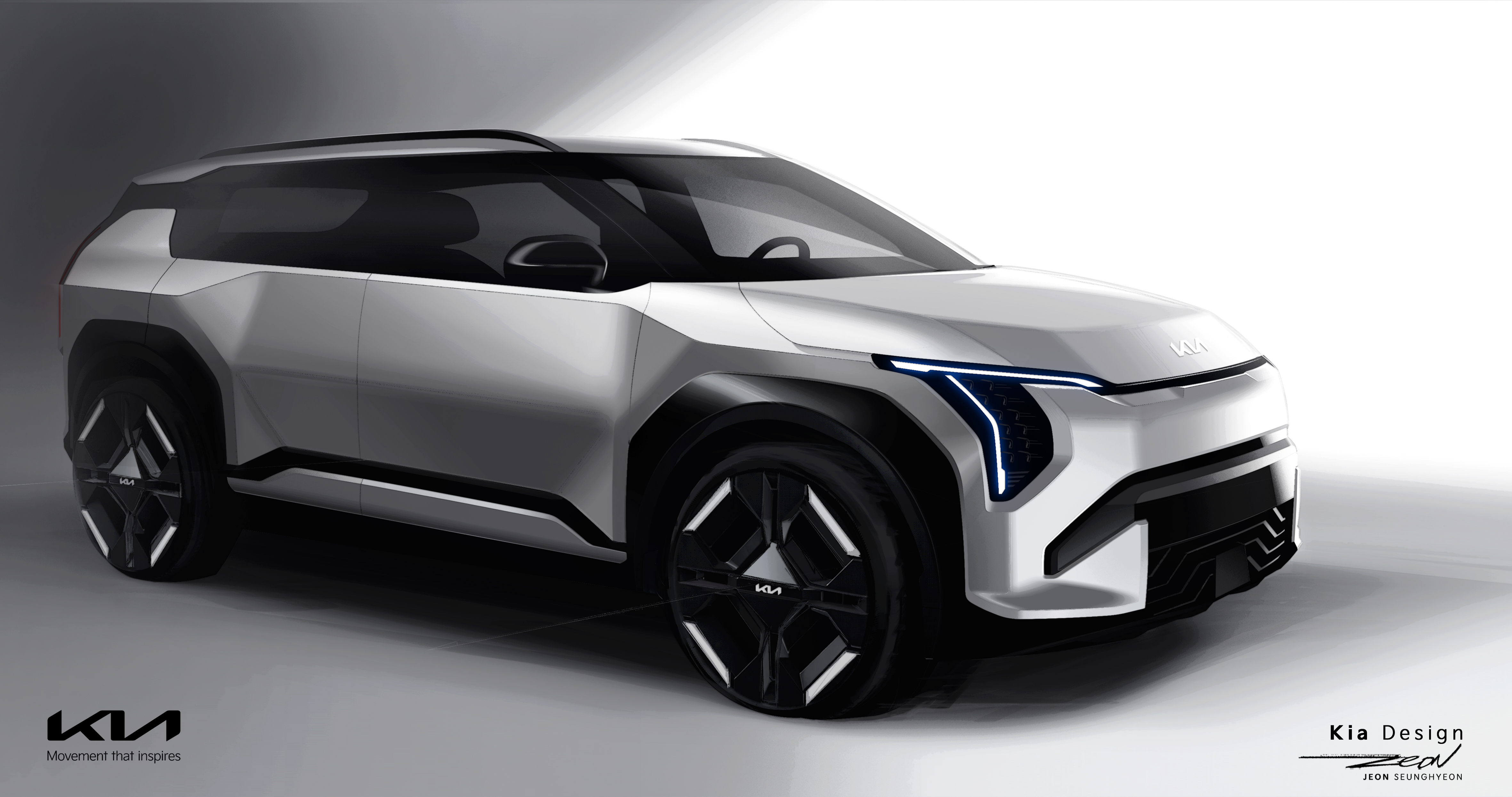 기아는 측면부를 이루는 선과 면을 기하학적으로 배치해 볼륨감 있는 차체와 민첩한 실루엣을 동시에 연출했다.