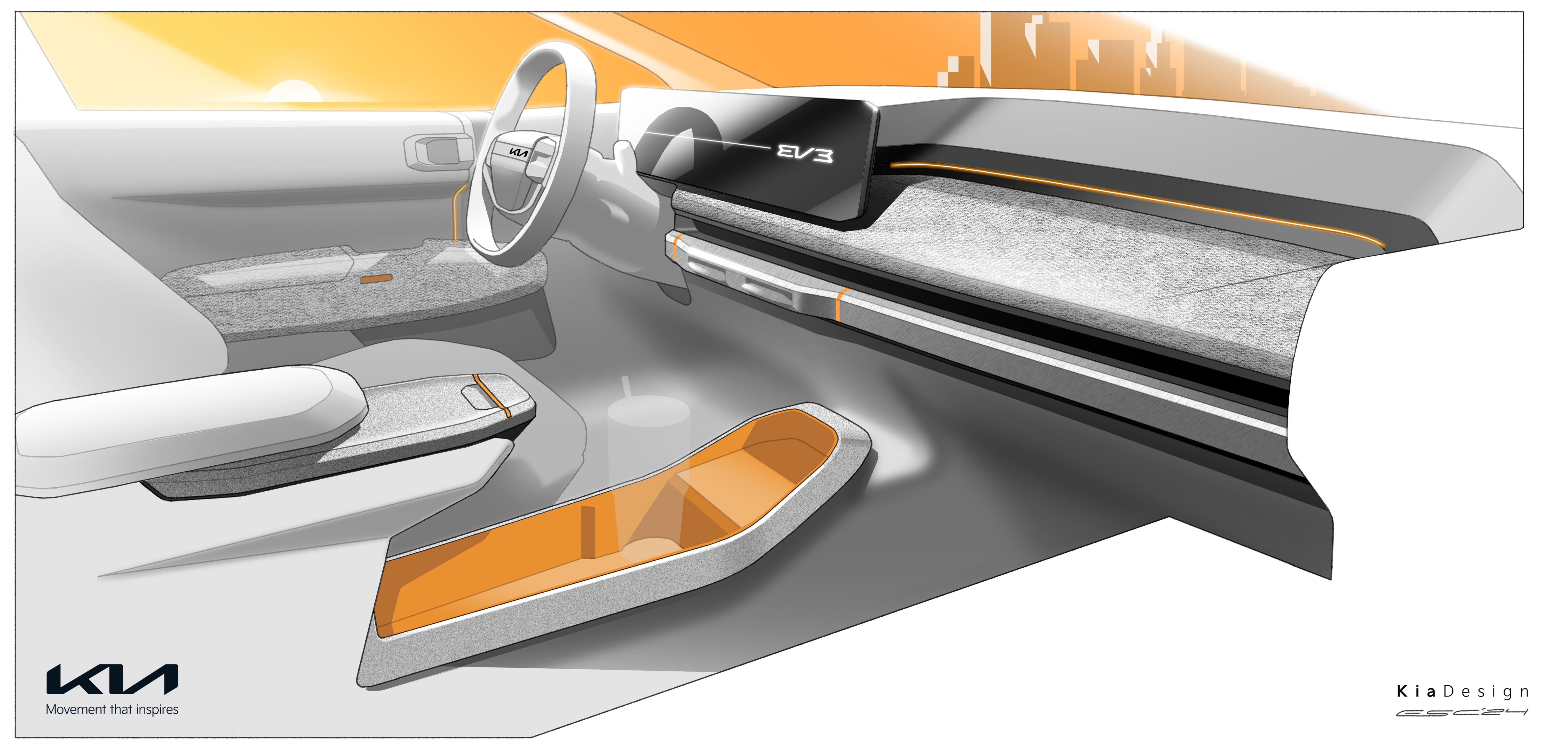 기아글로벌디자인담당 카림 하비브(Karim Habib) 부사장은 “EV3의 대담하고 기하학적이며 강건한 디자인은 지속가능한 모빌리티로 전환을 가속화하기 위한 기아의 역동적인 접근방식을 보여준다”며 “고급스러운 소재와 색상을 폭넓게 적용한 EV3는 생활공간과 같은 실내 디자인으로 모두를 위한 차별화된 EV 경험을 창출한다”고 밝혔다.