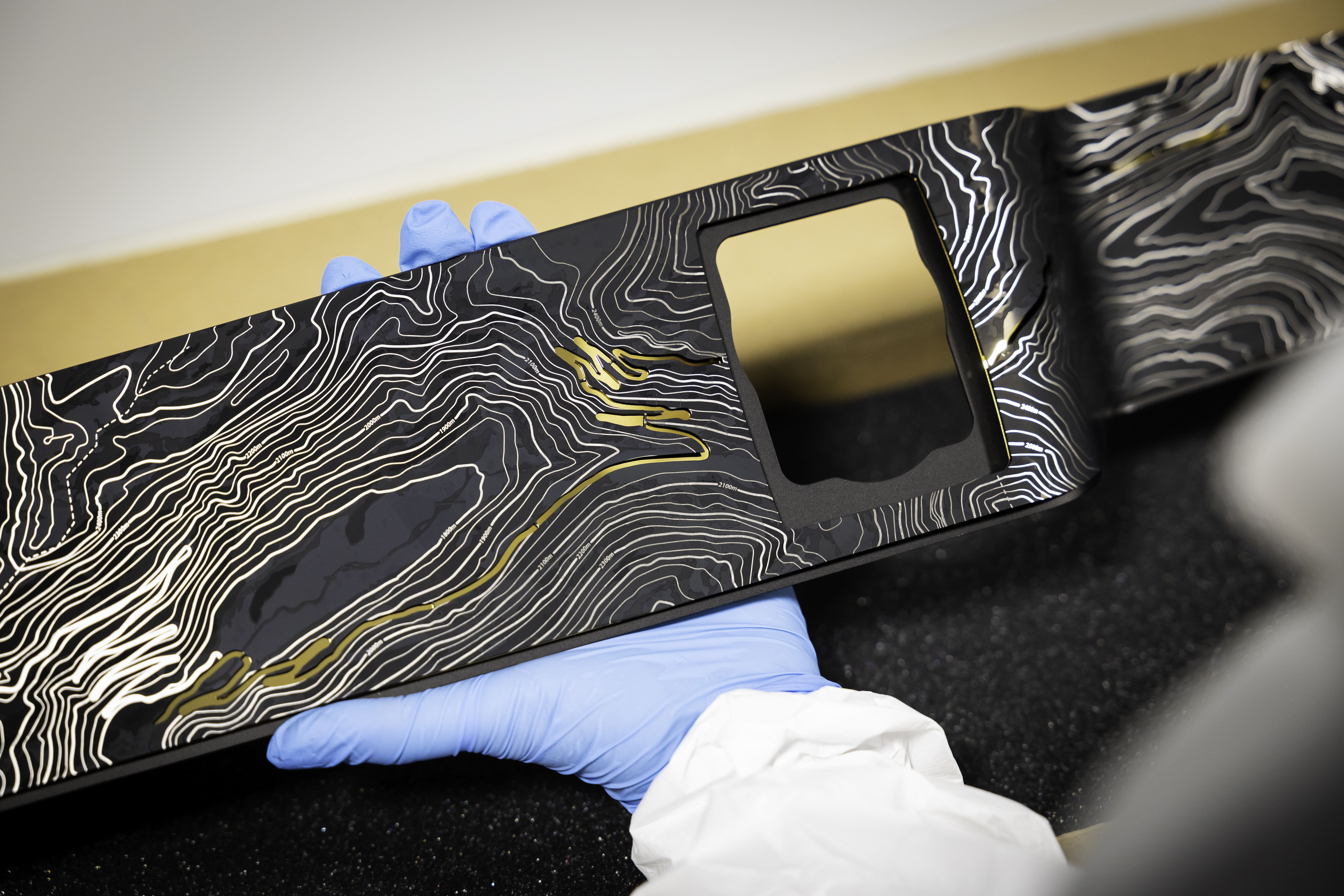 가장 공들인 부분은 대시보드를 가로지르는 '갤러리'다. 영화 속 주요 장면이 촬영된 푸르카 패스의 등고선을 3D로 표현했으며, 1년간의 개발과 10번의 프로토타입 제작 끝에 완성됐다. 스타라이트 헤드라이너에는 1964년 7월 11일 푸르카 패스 상공의 별자리를 재현했고, 피크닉 테이블에는 22K 골드로 포트 녹스의 가상 지도를 새겼다.