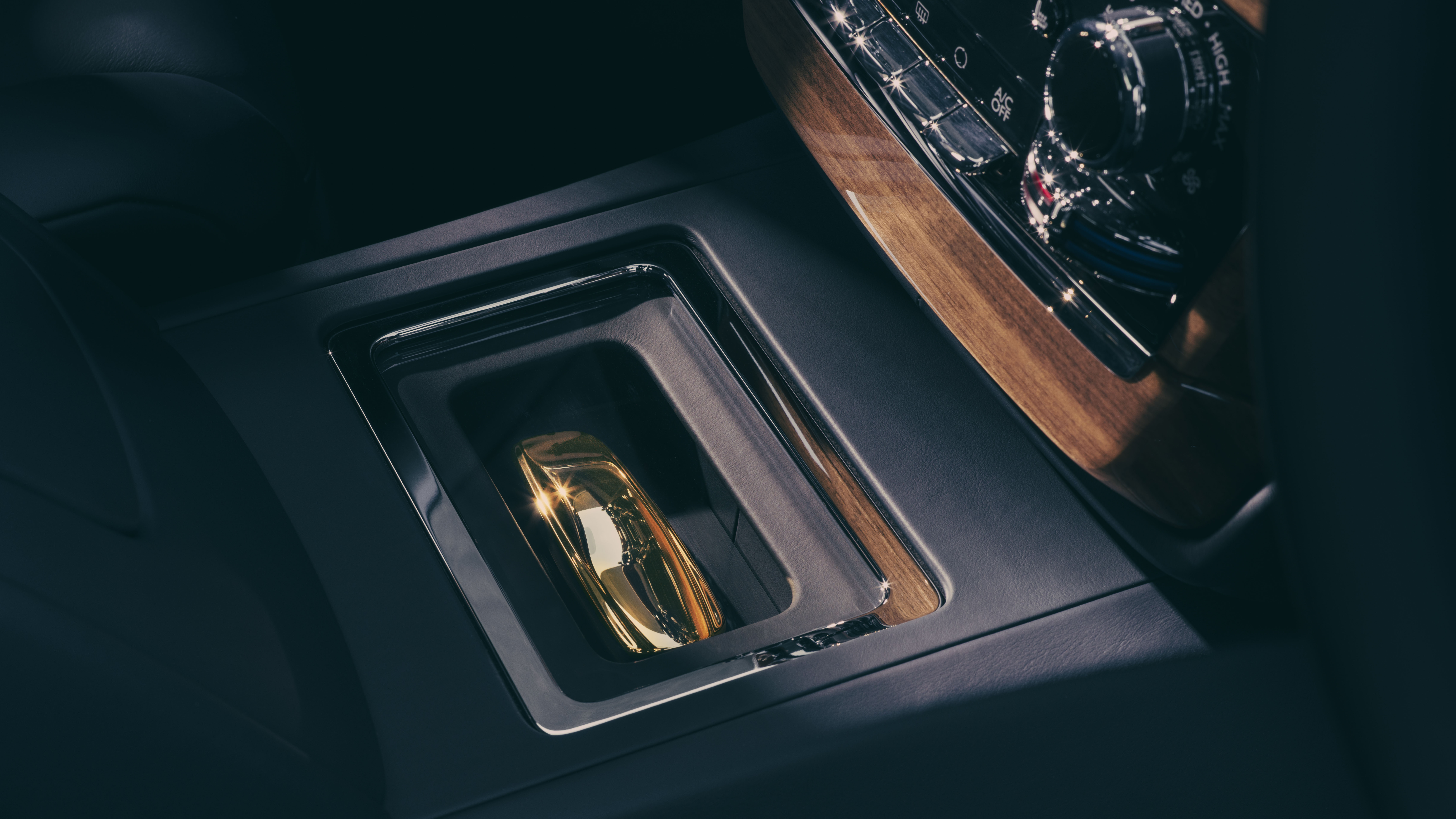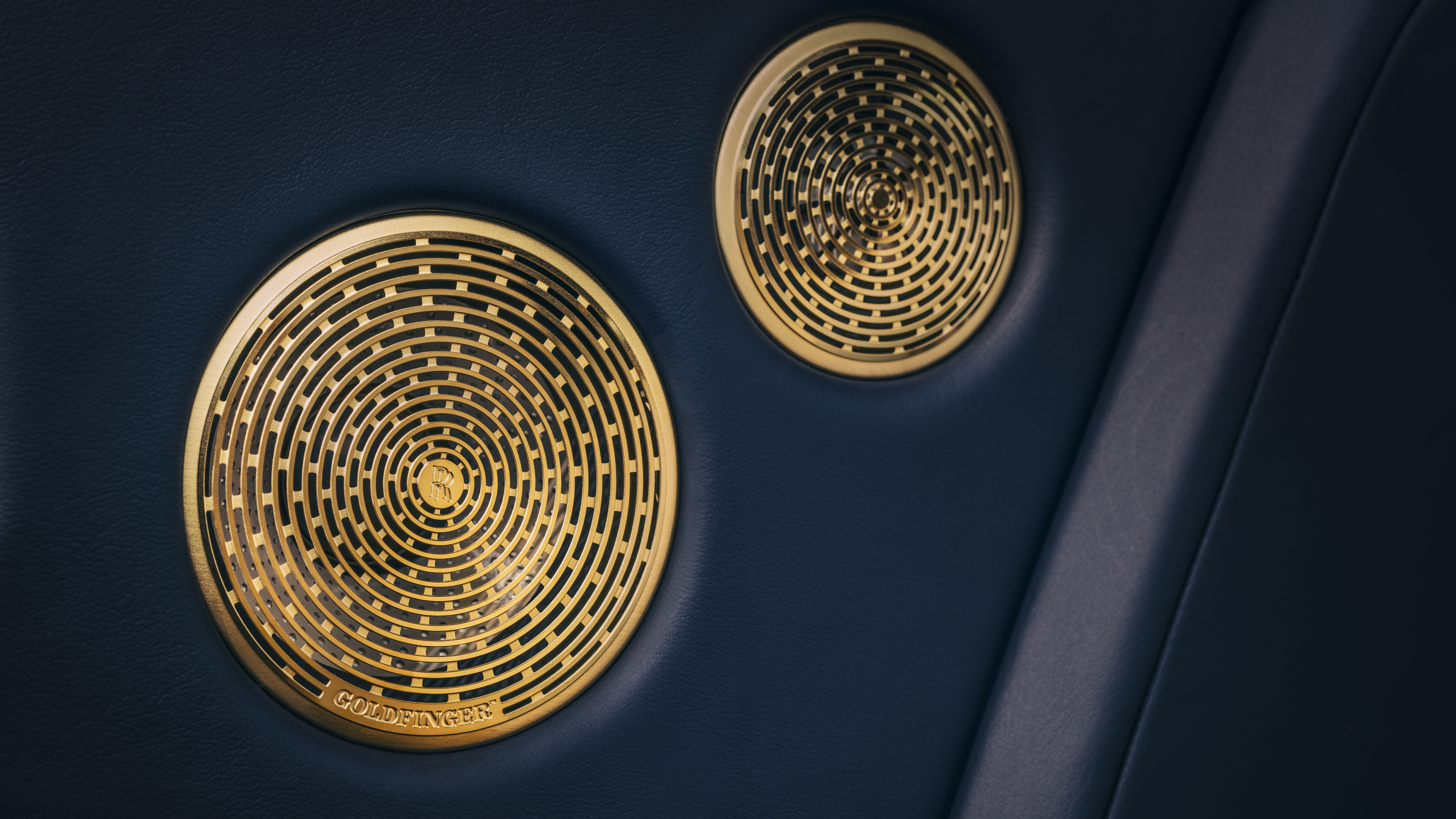 실내는 기술과 예술의 정수를 보여준다. 프론트 콘솔에는 18K 골드로 제작된 미니어처 팬텀이 숨겨져 있으며, 센터콘솔과 글로브박스 내부도 골드 마감으로 처리됐다. 글로브박스 내부에는 영화 속 골드핑거의 명대사 "이것은 금입니다, 본드씨. 나는 평생 그것의 색깔과 광채, 신성한 무게에 매료되어 왔죠"가 새겨져 있다.