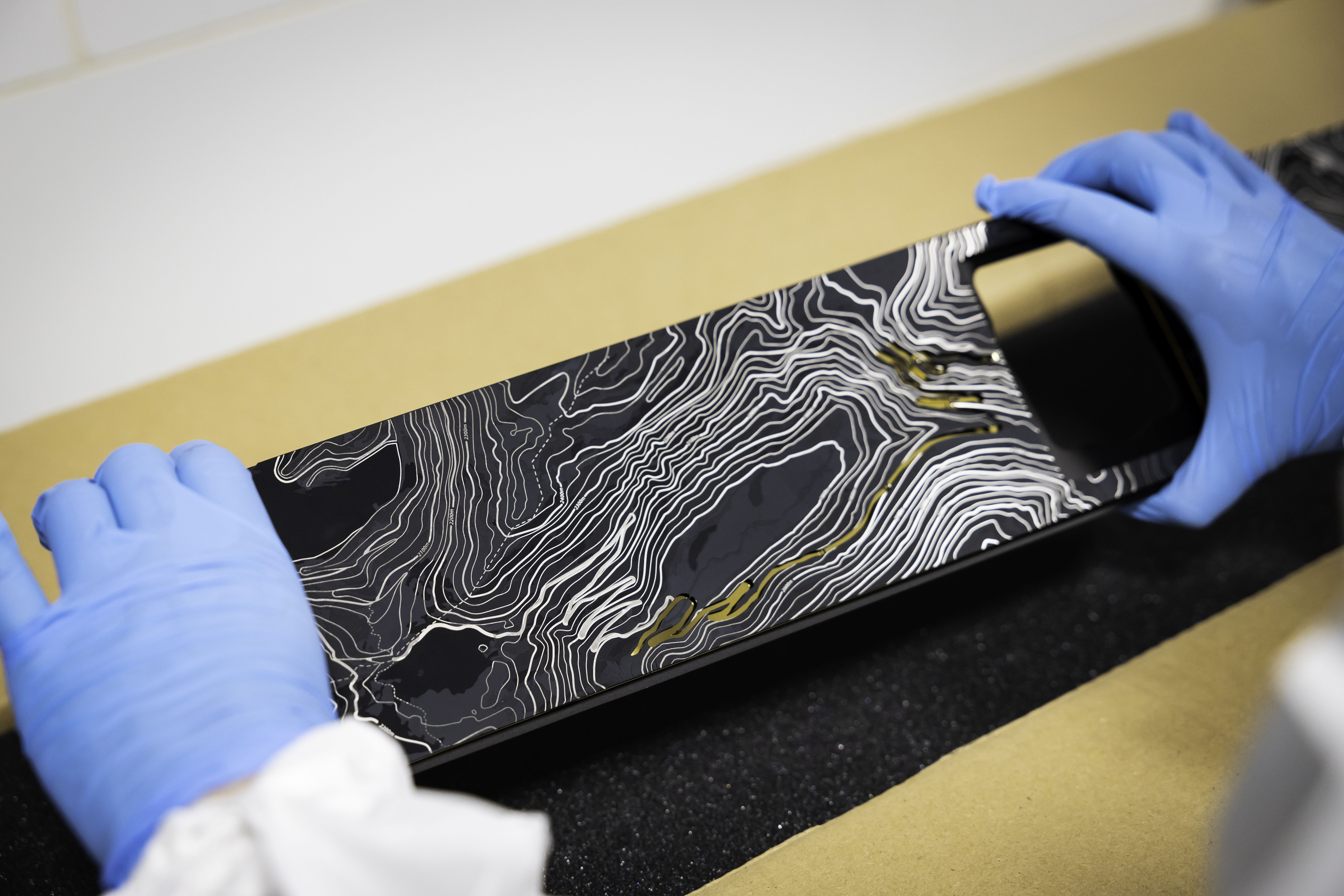 가장 공들인 부분은 대시보드를 가로지르는 '갤러리'다. 영화 속 주요 장면이 촬영된 푸르카 패스의 등고선을 3D로 표현했으며, 1년간의 개발과 10번의 프로토타입 제작 끝에 완성됐다. 스타라이트 헤드라이너에는 1964년 7월 11일 푸르카 패스 상공의 별자리를 재현했고, 피크닉 테이블에는 22K 골드로 포트 녹스의 가상 지도를 새겼다.