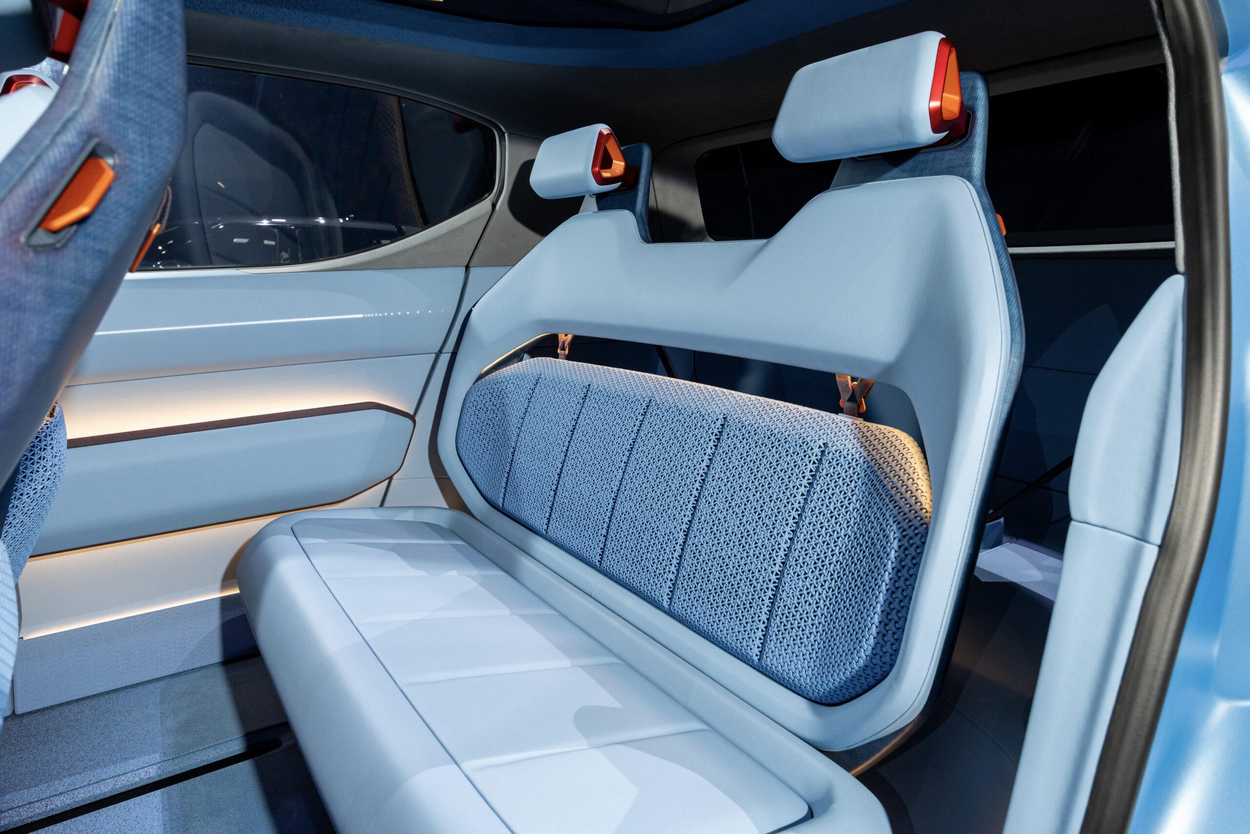콘셉트 EV2의 실내는 2열 시트를 접고 1열 시트를 최대한 뒤로 이동시킬 수 있어 1열을 다양하게 활용할 수 있는 것이 특징이다.