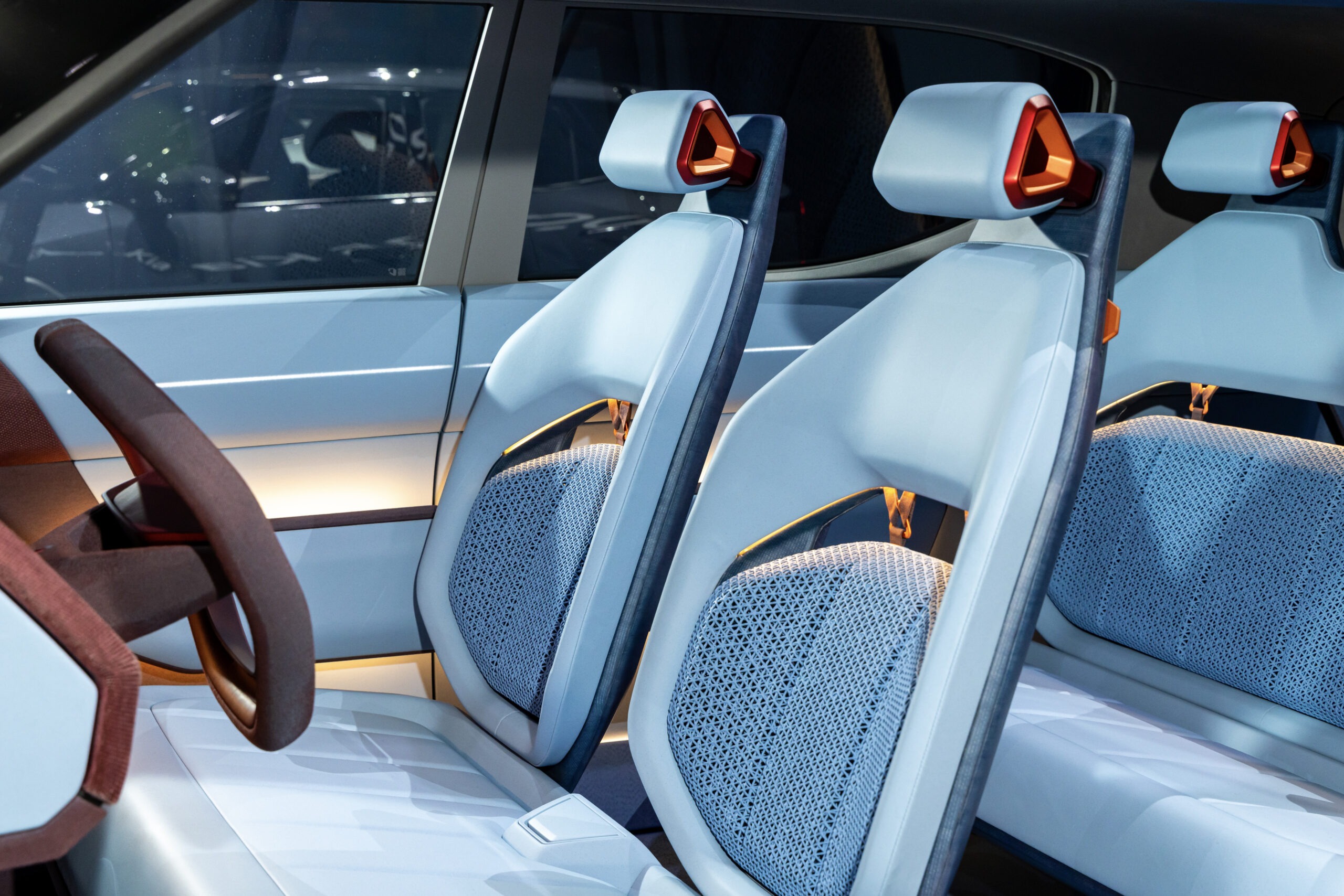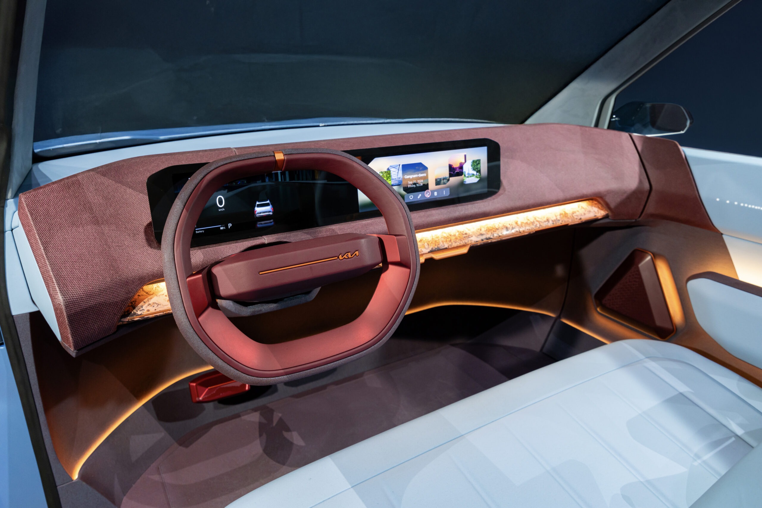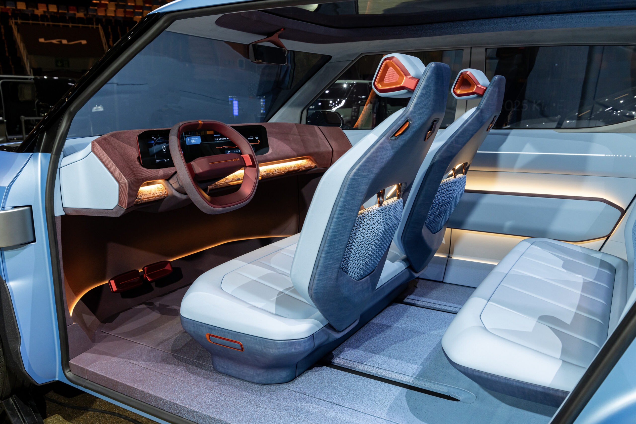 콘셉트 EV2의 실내는 2열 시트를 접고 1열 시트를 최대한 뒤로 이동시킬 수 있어 1열을 다양하게 활용할 수 있는 것이 특징이다.