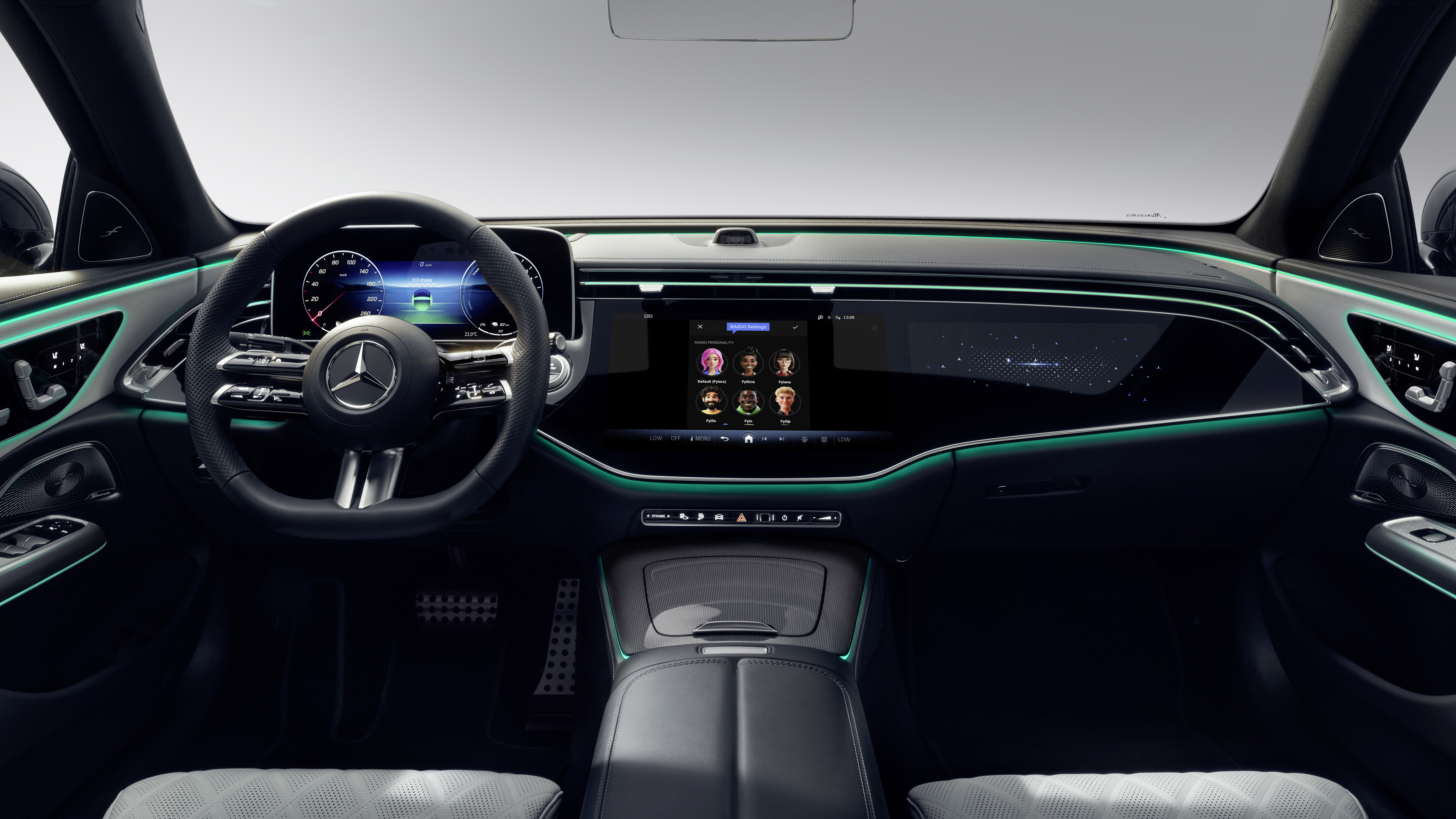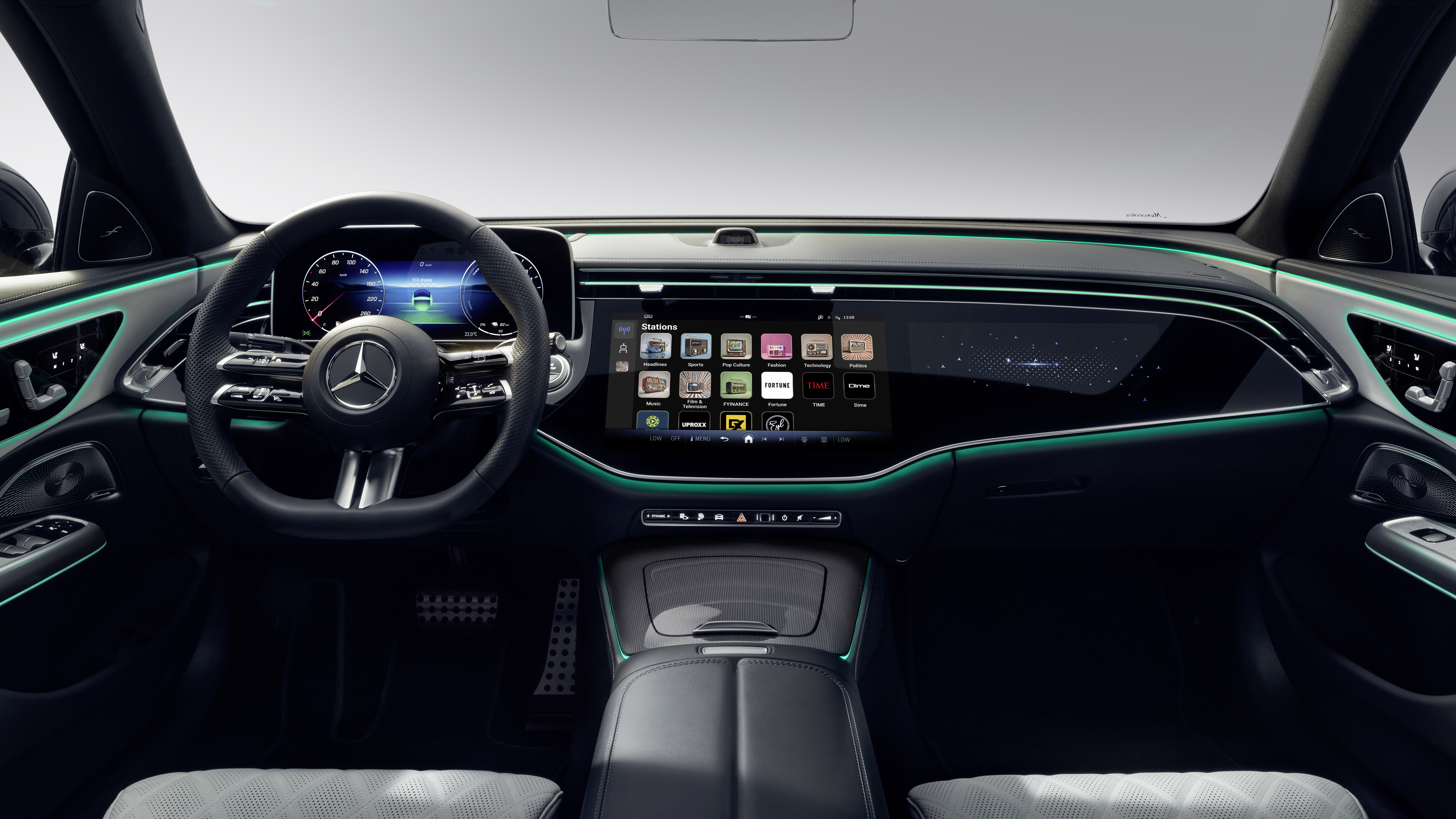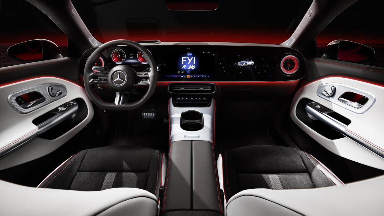 실내는 최소화된 디자인 철학에 따라 핵심 요소만 강조했다. 옵션으로 제공되는 MBUX 슈퍼스크린은 26cm(10.25인치) 운전자 디스플레이와 35.6cm(14인치) 중앙 디스플레이를 하나의 유리면 아래 통합했으며, 출시 후에는 조수석에도 14인치 디스플레이가 추가될 예정이다.
