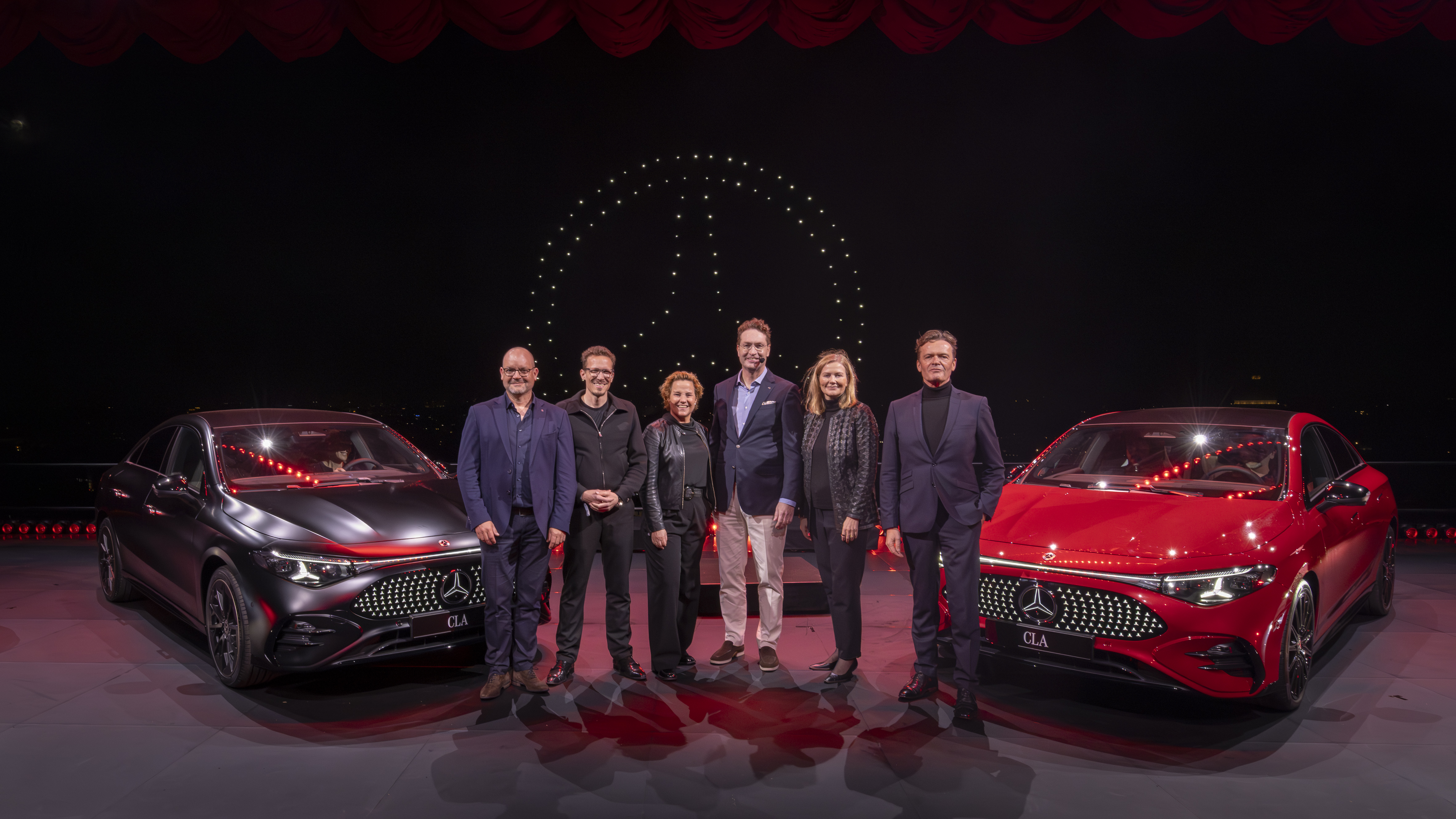 CLA는 긴 휠베이스와 짧은 오버행, 강력한 GT 스타일의 후면으로 역동적인 비율을 자랑한다. 전면부에는 메르세데스-벤츠 최초로 142개의 개별 LED 별 패턴이 빛나는 일체형 패널을 적용했으며, 전조등과 후미등 역시 별 모양으로 디자인됐다.