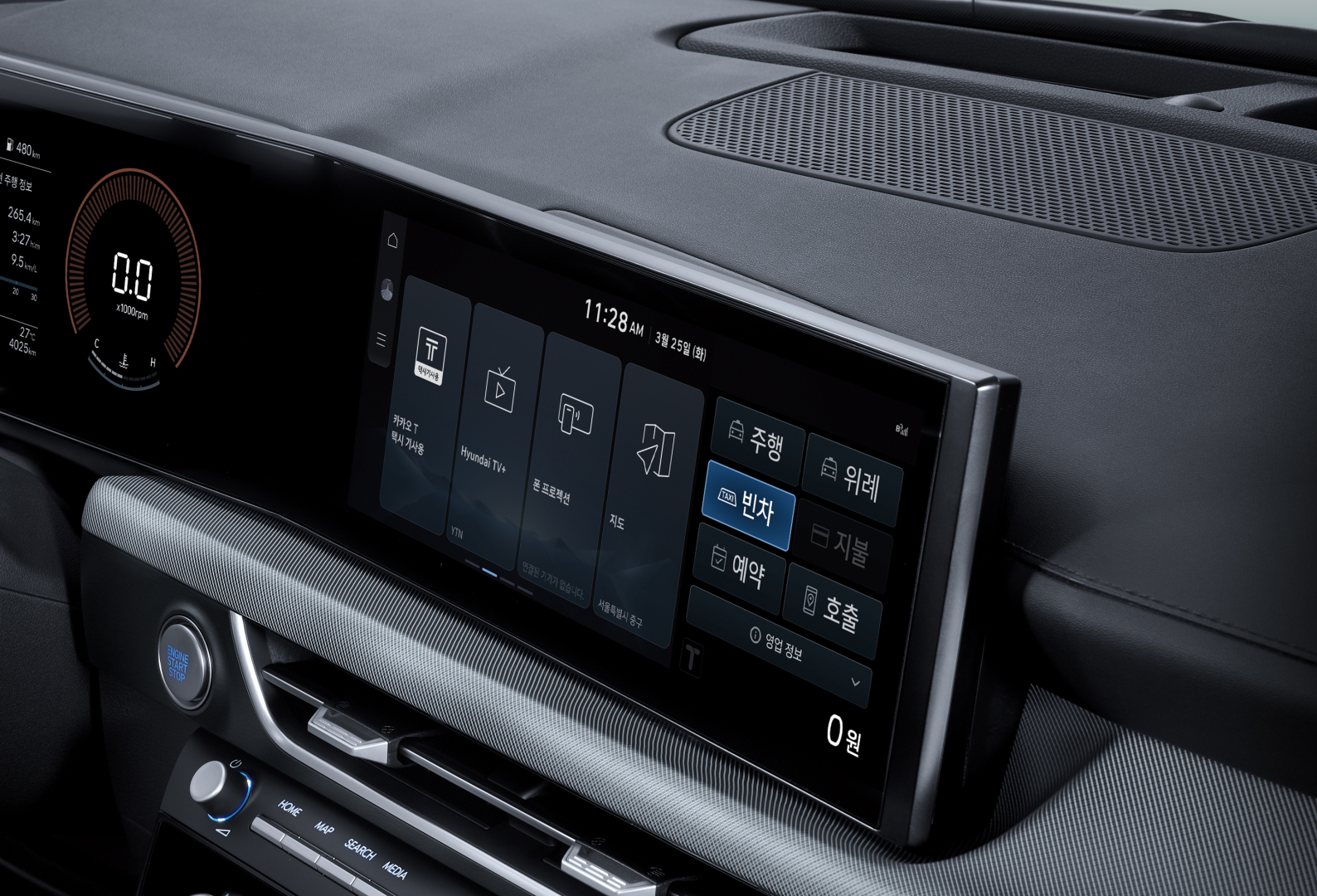 2025 쏘나타 택시의 가장 큰 특징은 12.3인치 디스플레이를 통해 구현되는 '택시 통합 단말기'다. 기존에는 카카오 T 택시 앱, 내비게이션, 택시 미터기, 운행기록계 등이 별도로 운영됐으나, 이번 모델에서는 하나의 화면으로 통합되어 운전자의 조작 피로도를 줄였다.