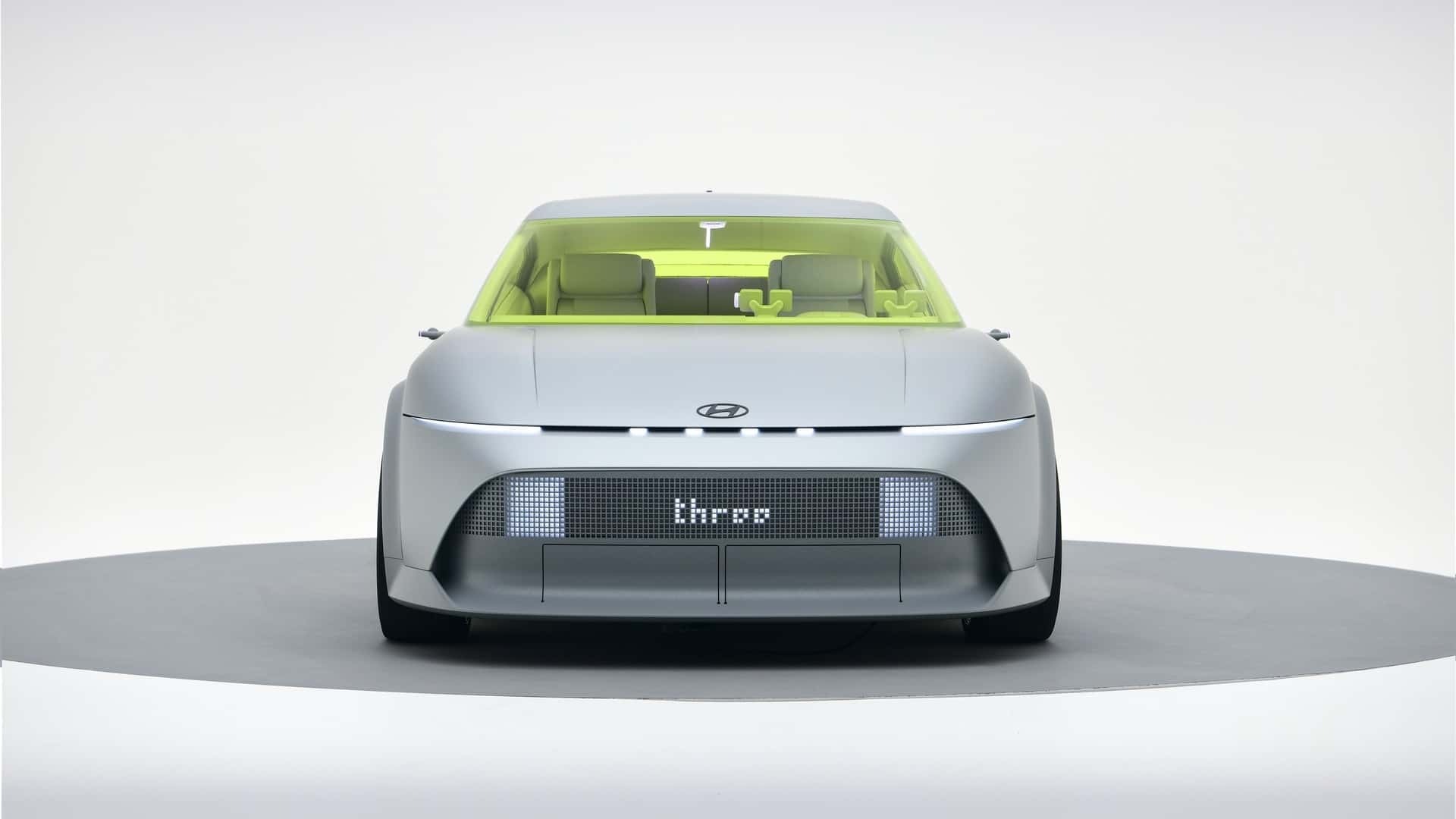 콘셉트 쓰리는 현대차 전용 전기차 브랜드 아이오닉의 첫 소형 EV 콘셉트카로, 해치백 형태의 개성 있는 디자인을 갖췄다.