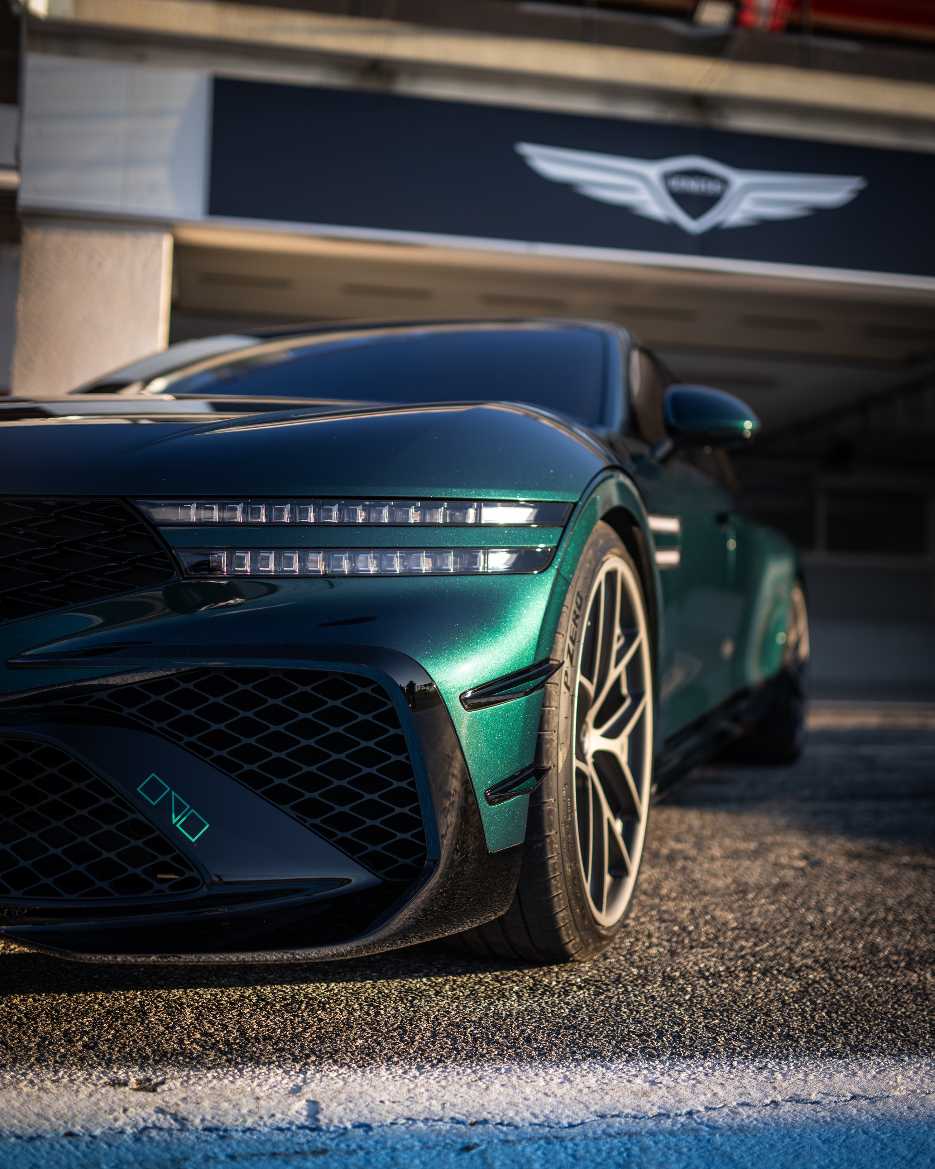 전면부는 크레스트 그릴과 투라인 램프 등 제네시스 고유의 디자인 요소를 유지하되 더 공격적으로 다듬었다. 마그마 배지가 새겨진 범퍼 양쪽에 카나드를 두고, 확장된 휠아치에는 22인치 전용 휠을 장착했다.