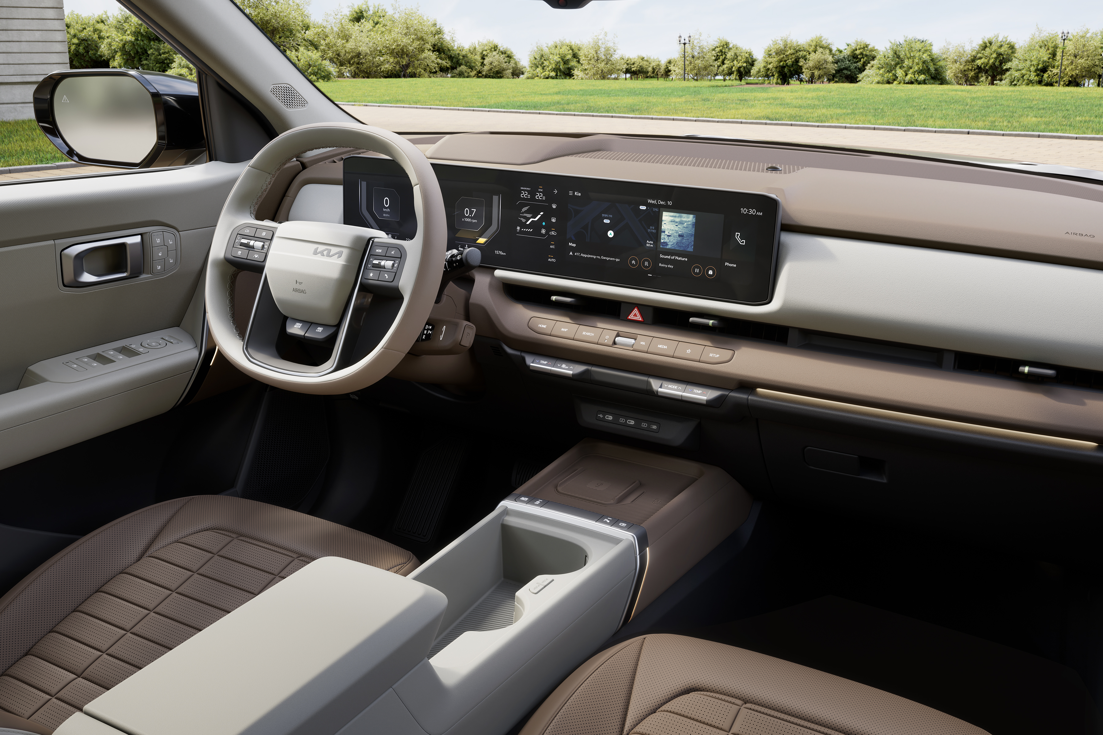 실내에는 파노라믹 와이드 디스플레이, 헤드업 디스플레이, 컬럼 타입 전자식 변속 레버가 적용됐으며, 1열 릴렉션 컴포트 시트와 2열 리클라이닝 시트를 통해 거주성과 편의성을 강화했다. 기아 최초로 적용된 바이브로 사운드 시트는 시트 진동과 사운드를 연동해 몰입감 있는 미디어 경험을 제공한다.