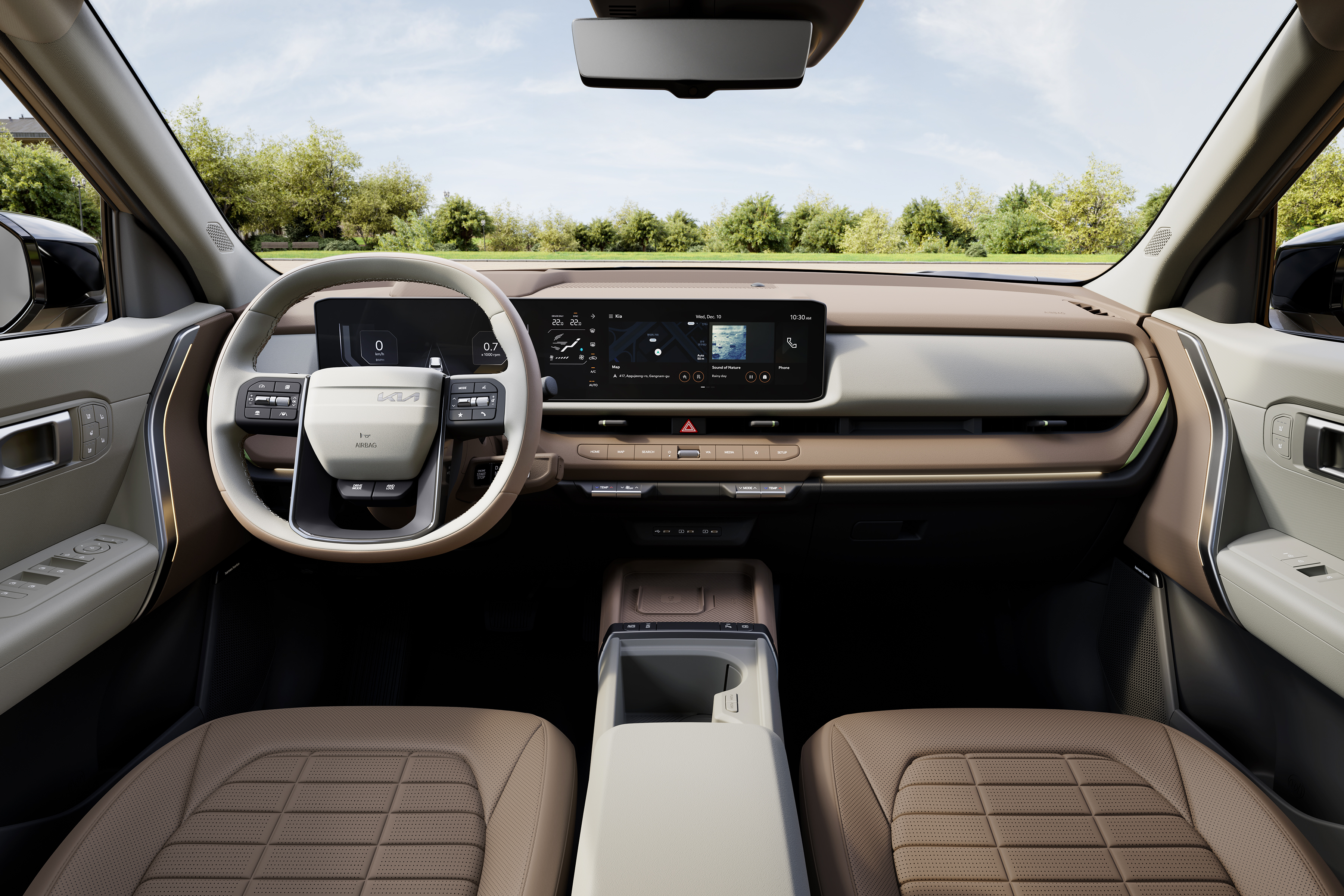 실내에는 파노라믹 와이드 디스플레이, 헤드업 디스플레이, 컬럼 타입 전자식 변속 레버가 적용됐으며, 1열 릴렉션 컴포트 시트와 2열 리클라이닝 시트를 통해 거주성과 편의성을 강화했다. 기아 최초로 적용된 바이브로 사운드 시트는 시트 진동과 사운드를 연동해 몰입감 있는 미디어 경험을 제공한다.