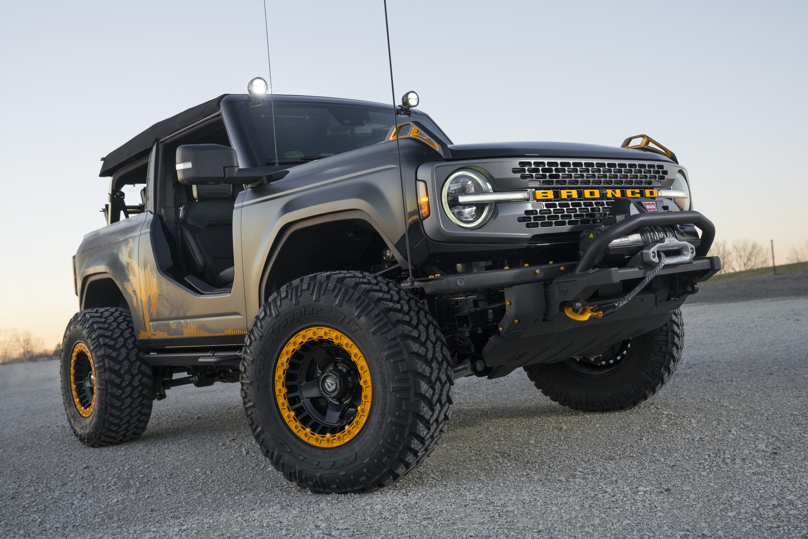Bronco의 공장 장착 차체 부품에 대한 잠재적 인 손상 대신, Bronco 브랜드의 Built Wild 혁신적인 디자인 프로세스를 통해 컨셉은 교체 가능한 프론트 펜더와 리어 쿼터를 가질 수있었습니다. 트레일 라이딩 전에 쉽게 설치하고 제거 할 수있는이 컨셉 액세서리 부품은 스톡 도장 부품을 대체하는 견고하고 충격에 대비 한 소재로 만들어집니다.